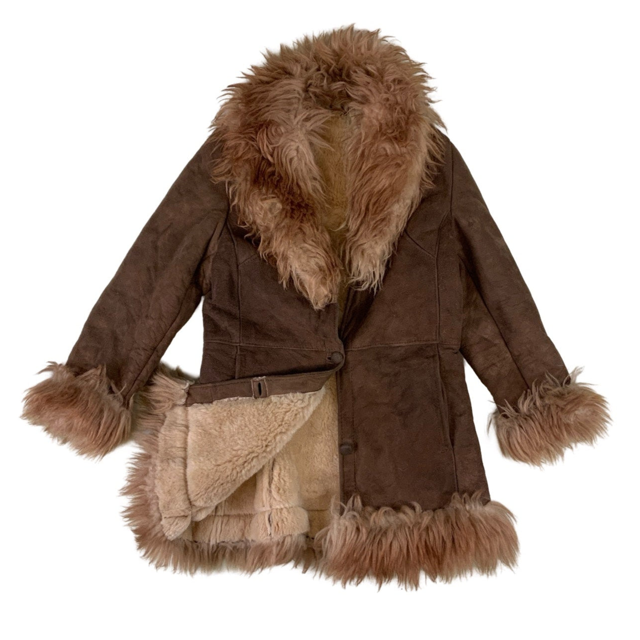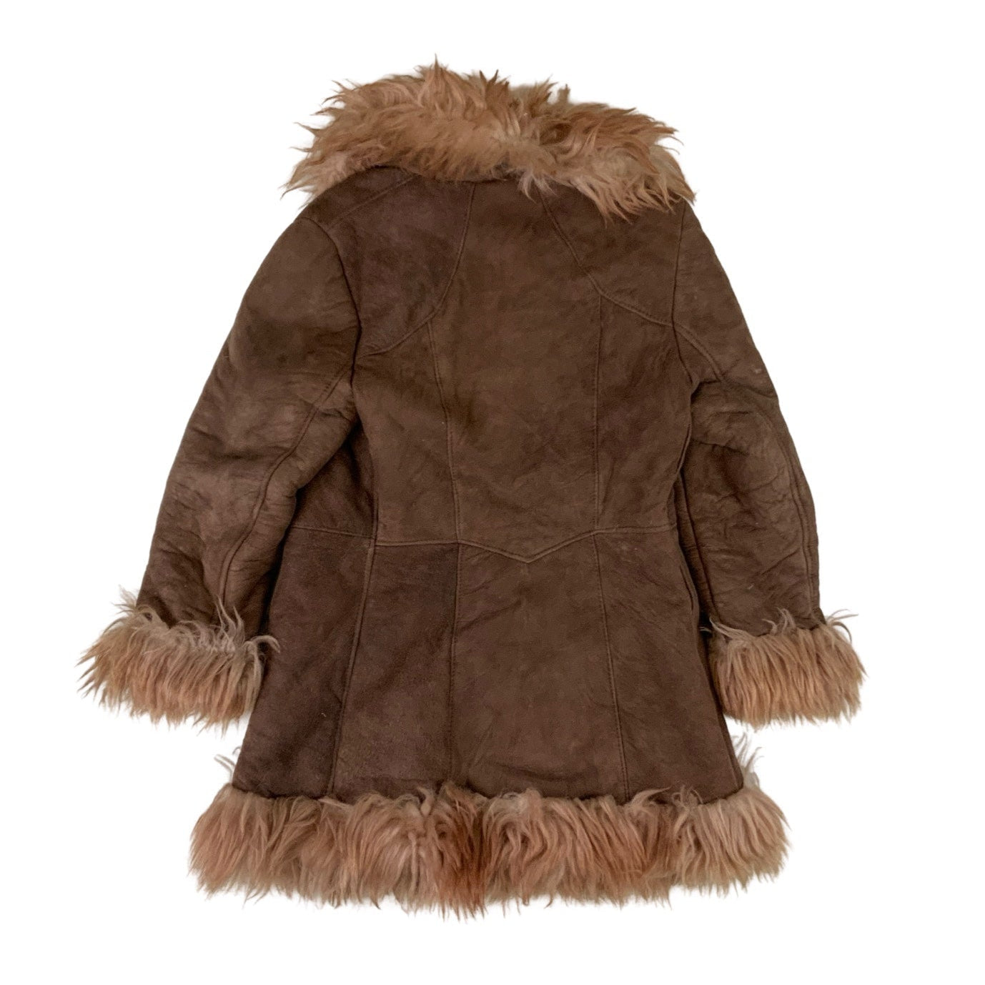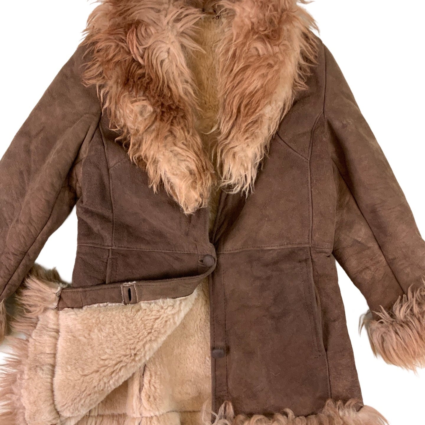 Vintage Sheepskin Brown Pink Faux Suede Shearling Style Coat 10 12 14