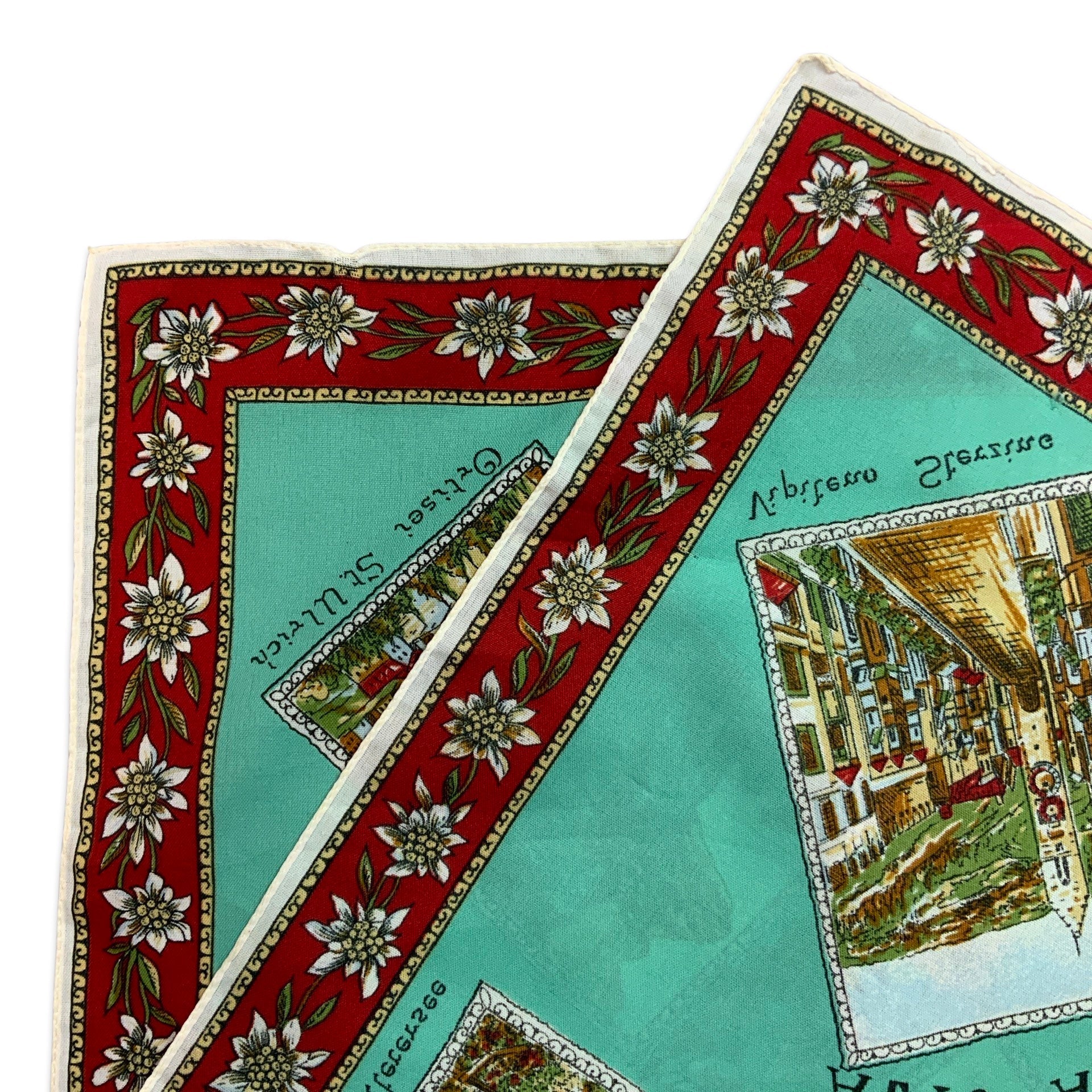 Vintage Turquoise Red Cream Italian Souvenir Novelty Print Scarf