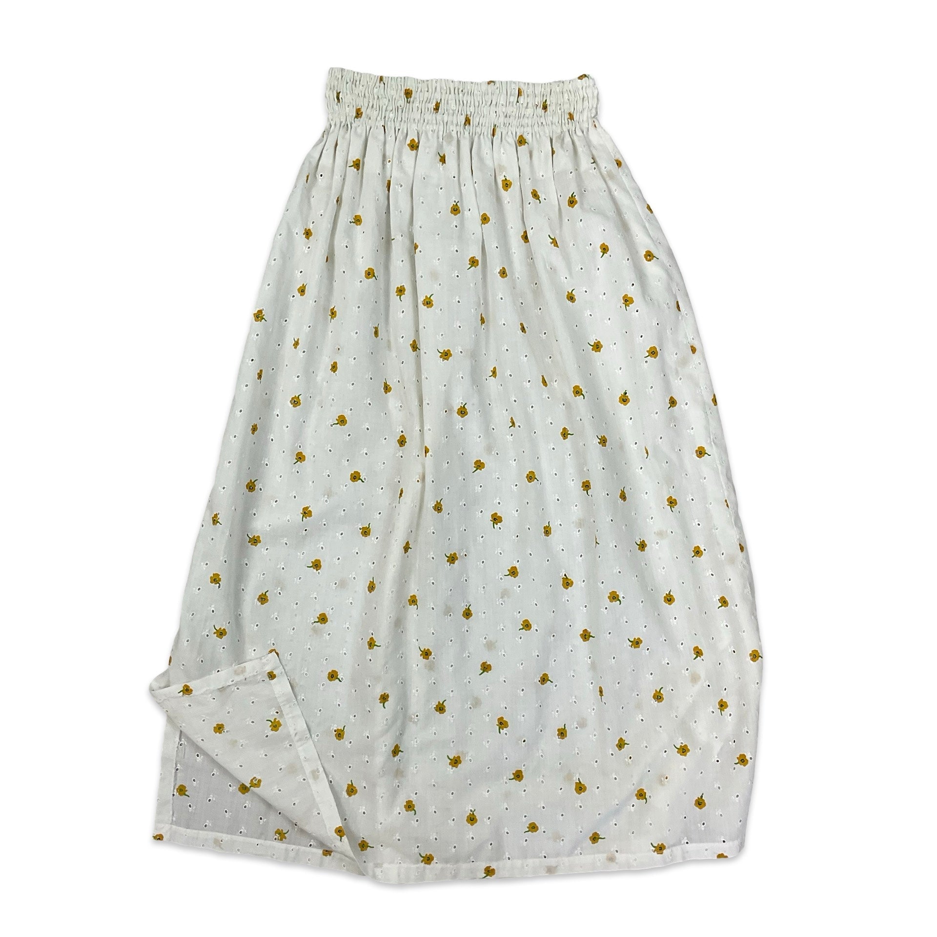 Vintage White Broderie Anglaise Floral Print Midi Skirt 6 8 10 12 14