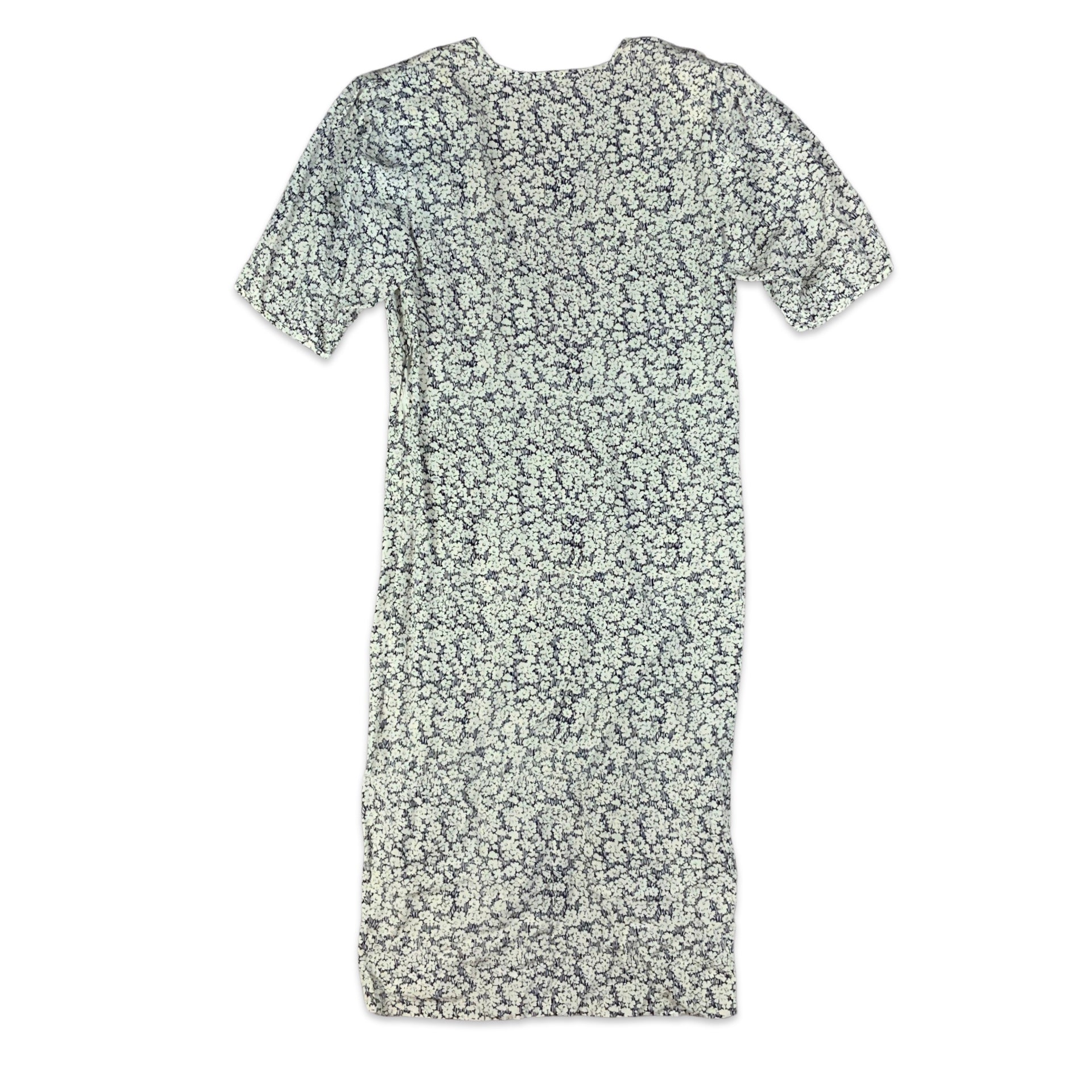 Vintage White & Navy Ditsy Floral Gathered Waist Dress 8 10