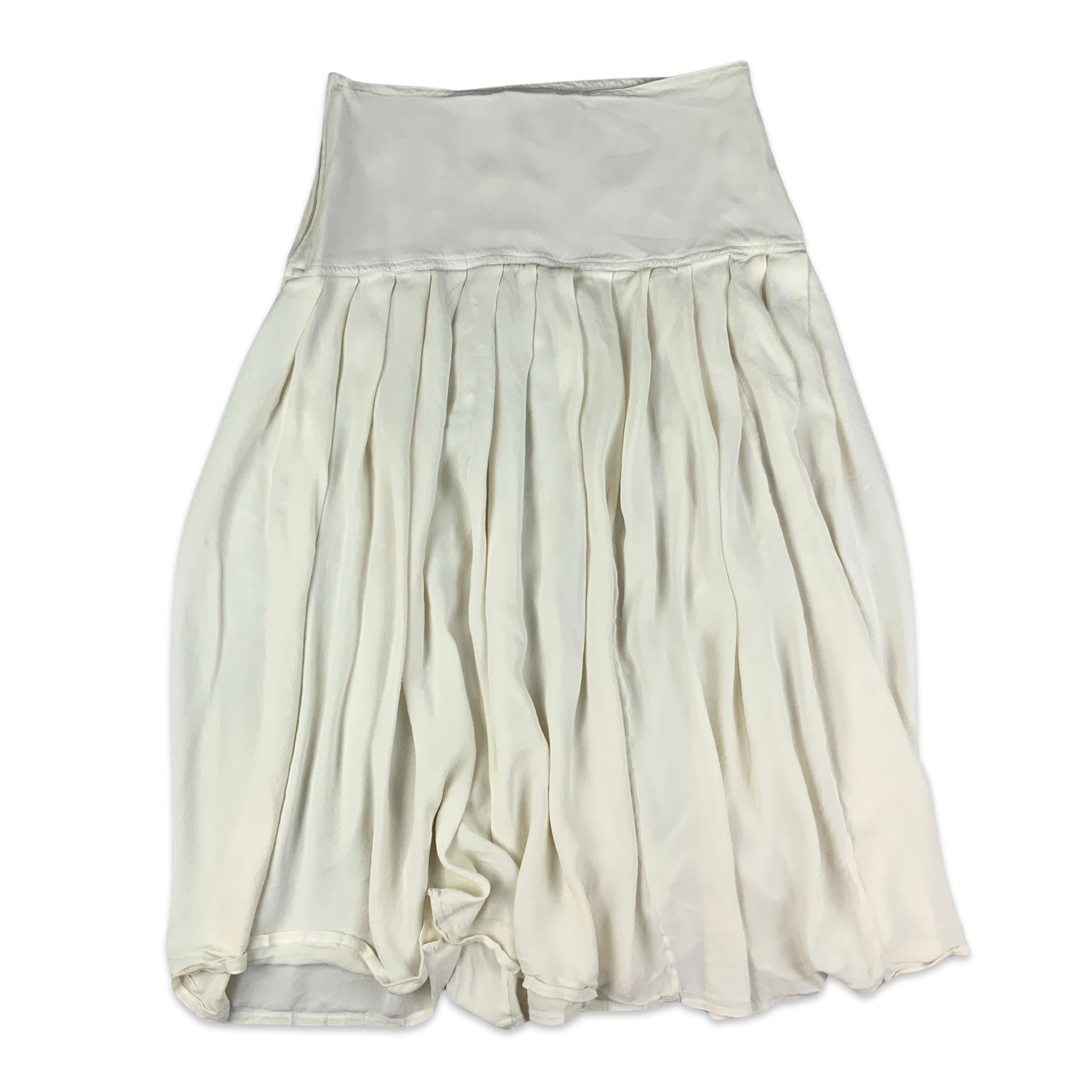 Vintage pleated skirt with decorative button detailing. Silk / polyamide blend material with a lined interior.