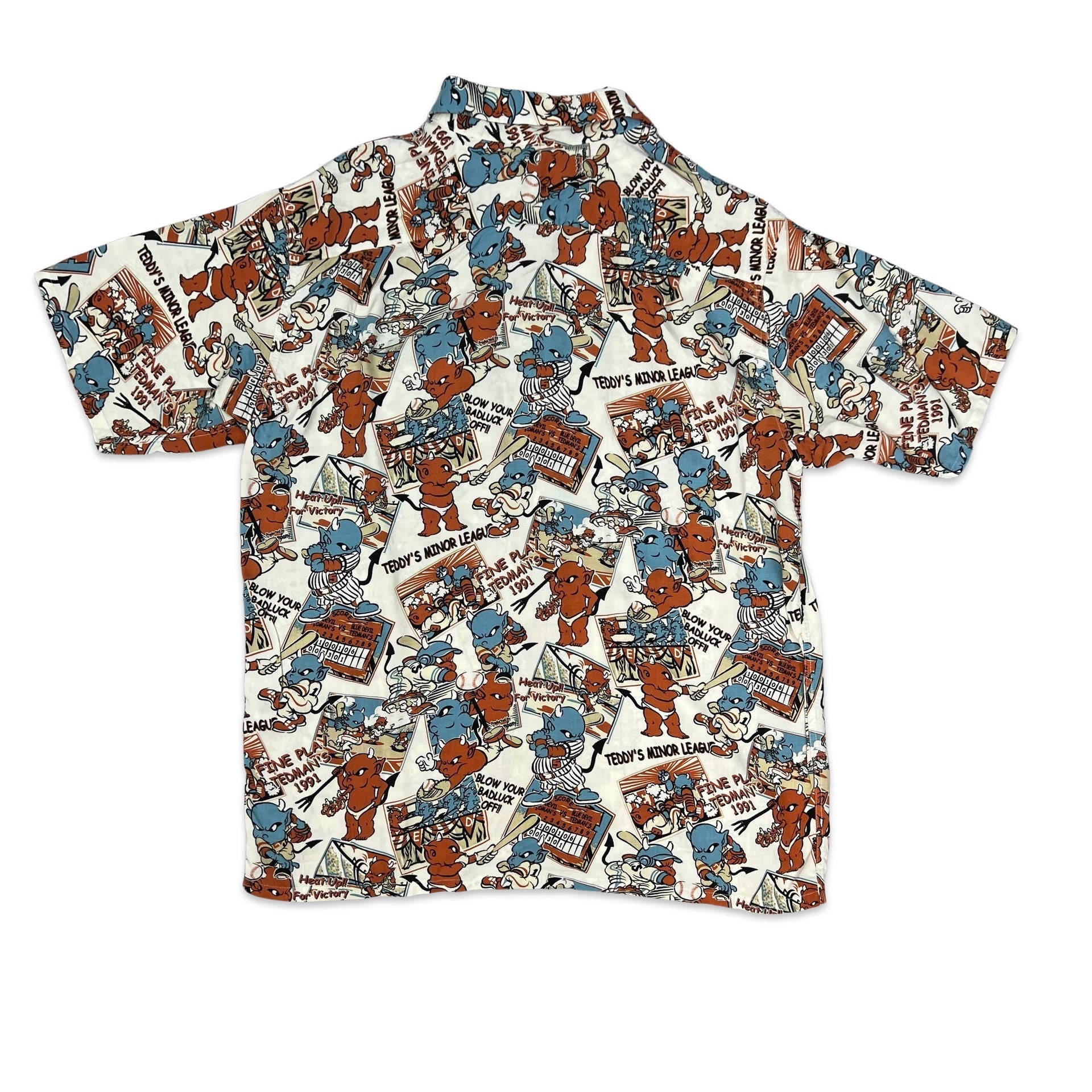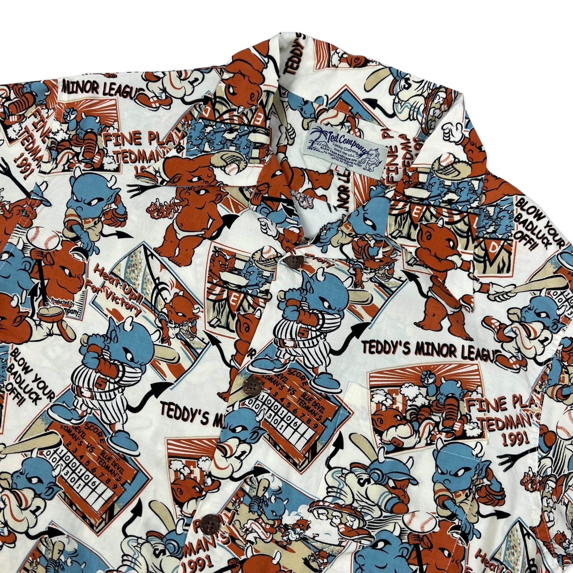 Vintage White Red & Blue Devil Baseball Print Hawaiian Shirt M L