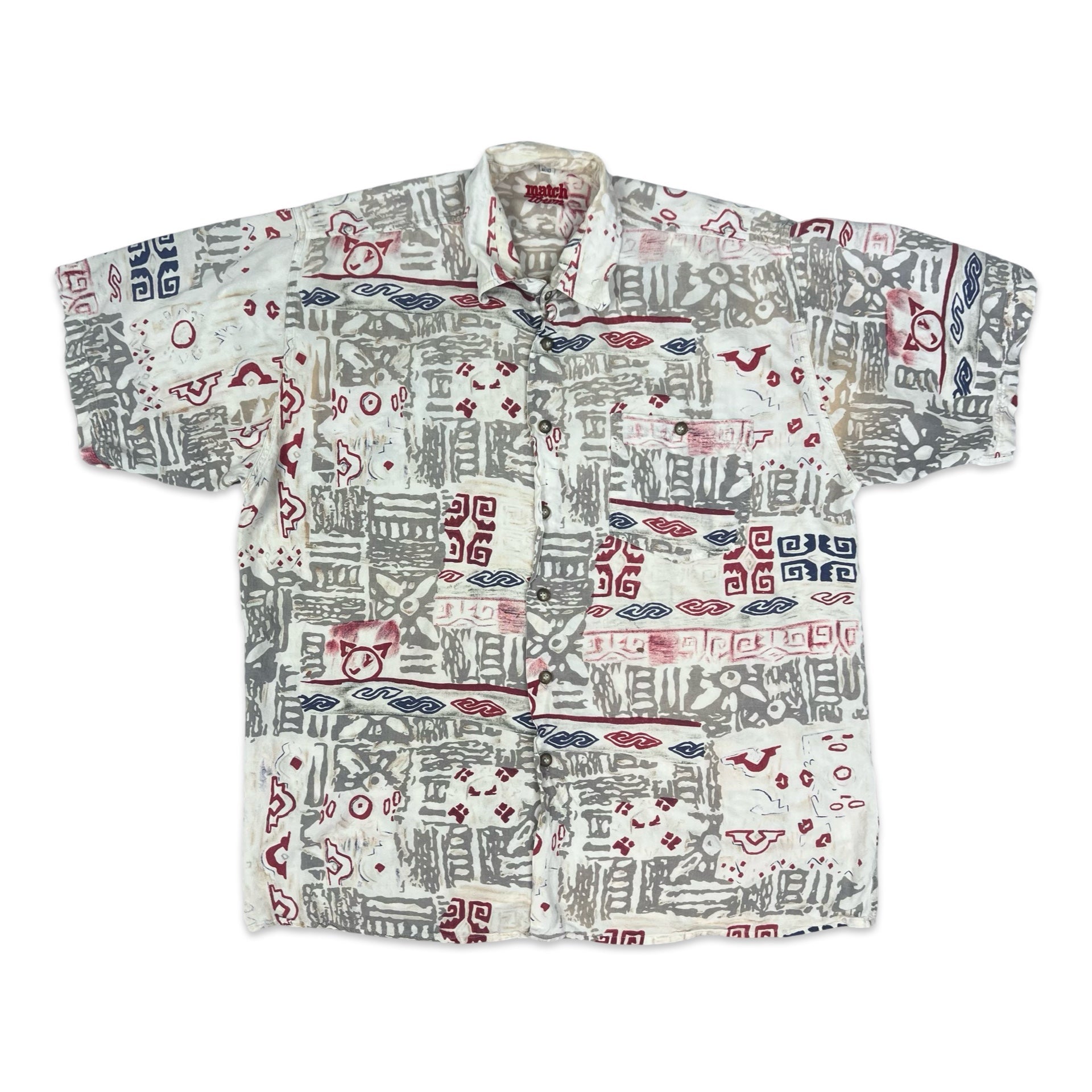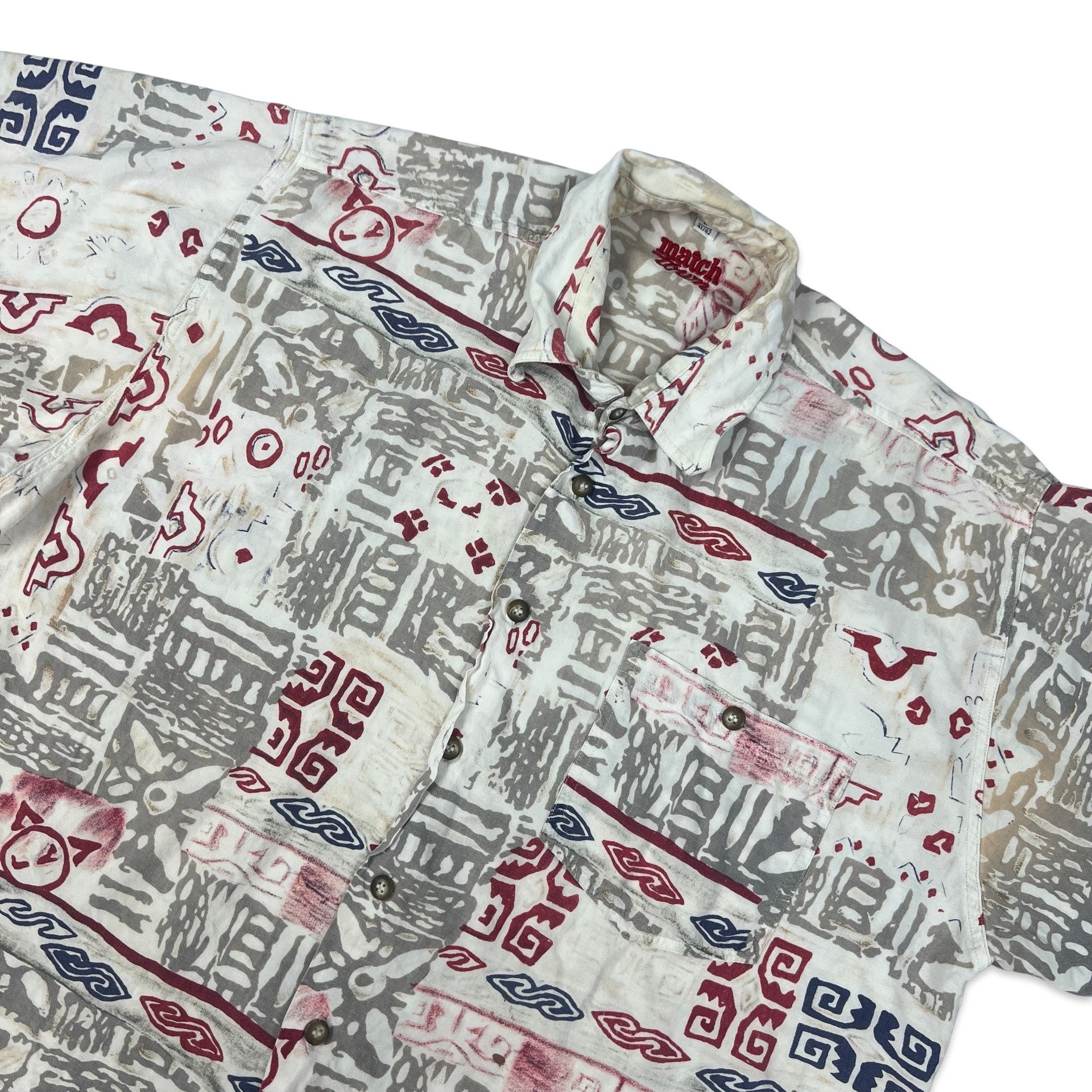 Vintage White Red & Grey Abstract Print Short Sleeve Shirt L XL