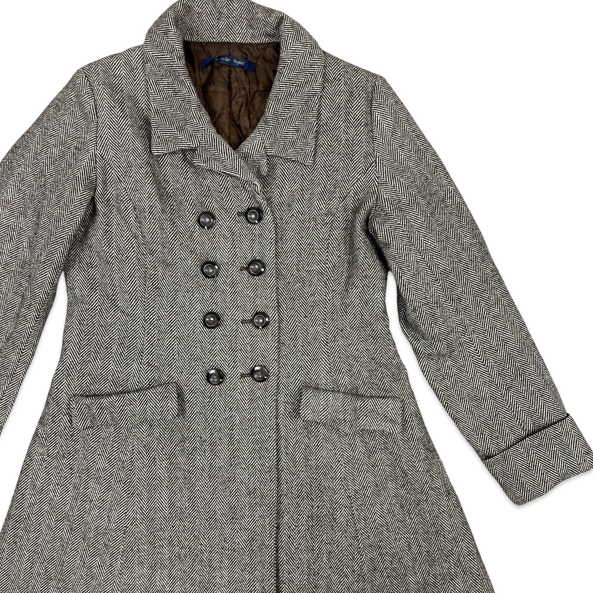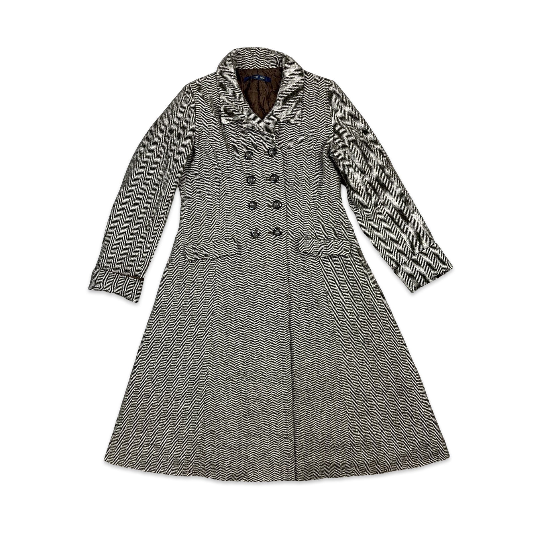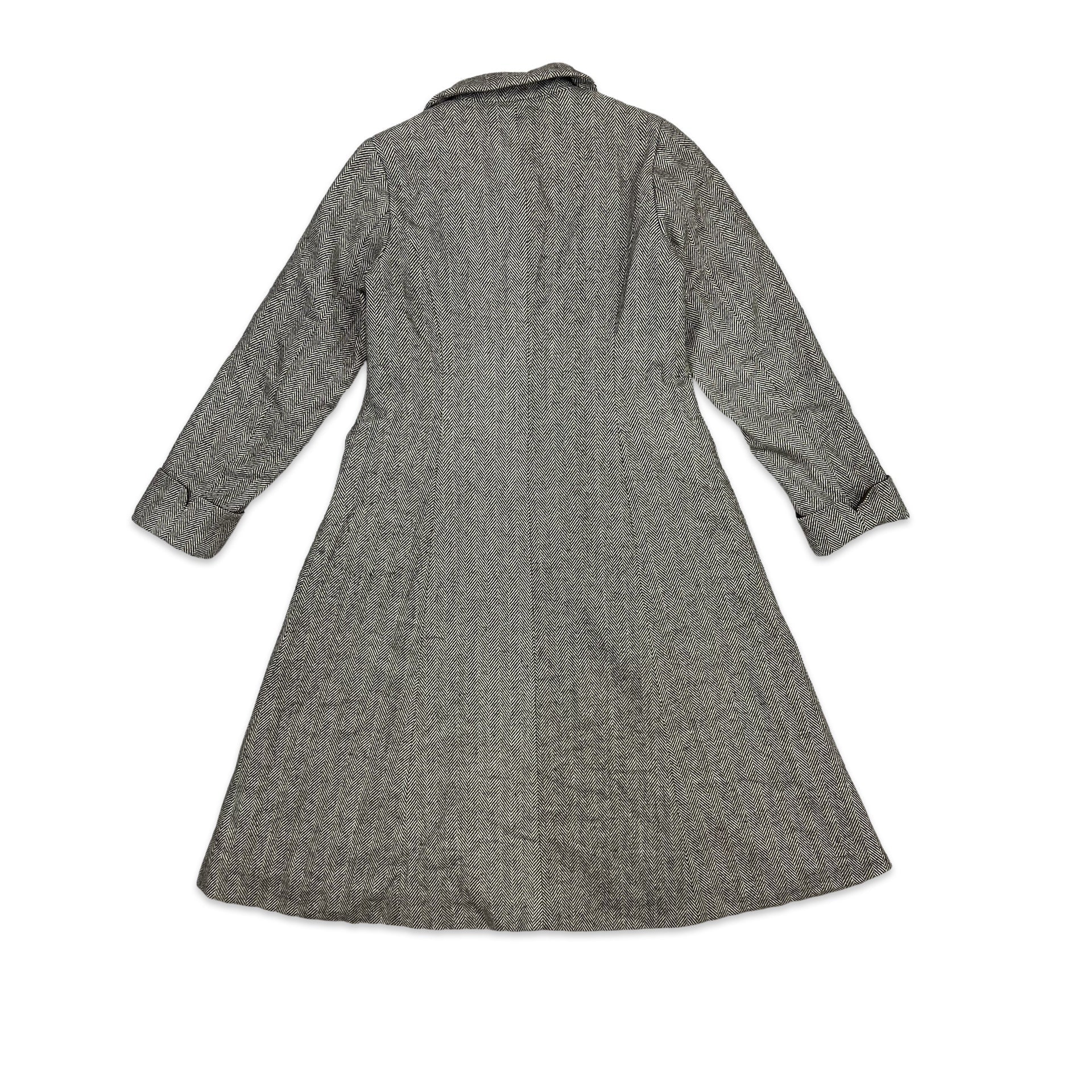 Vintage Wool Long Duster Coat Herringbone Brown Cream 8 10