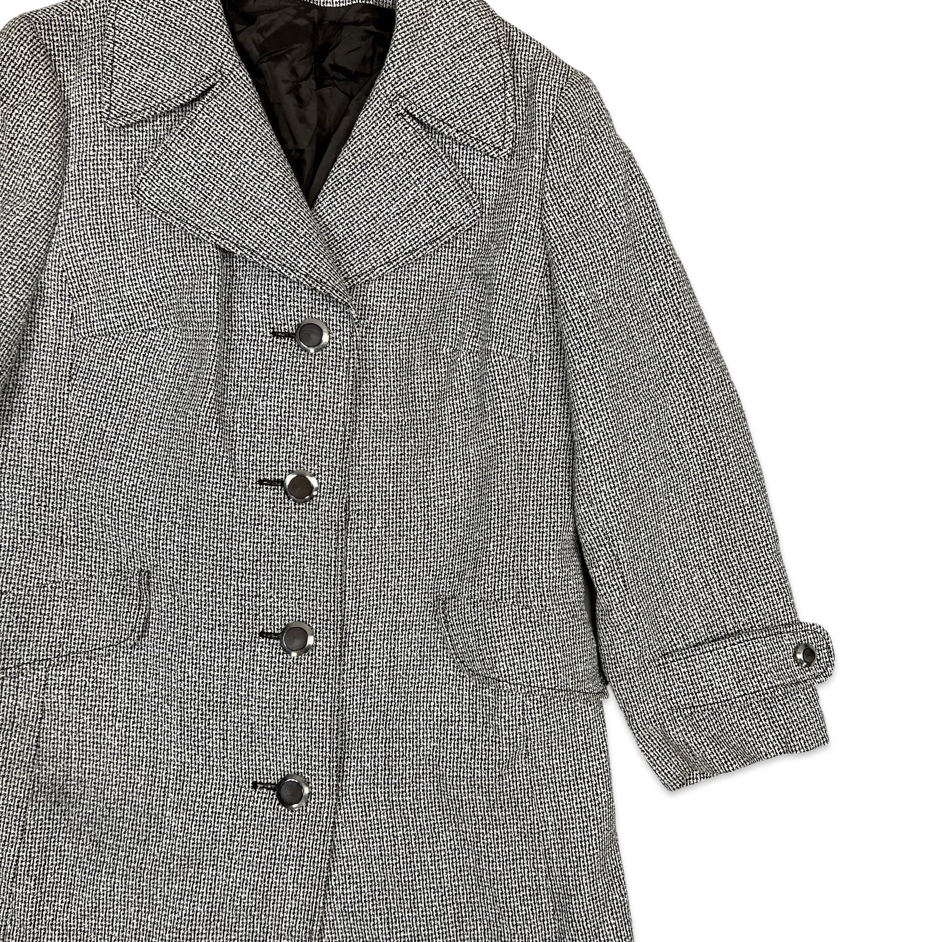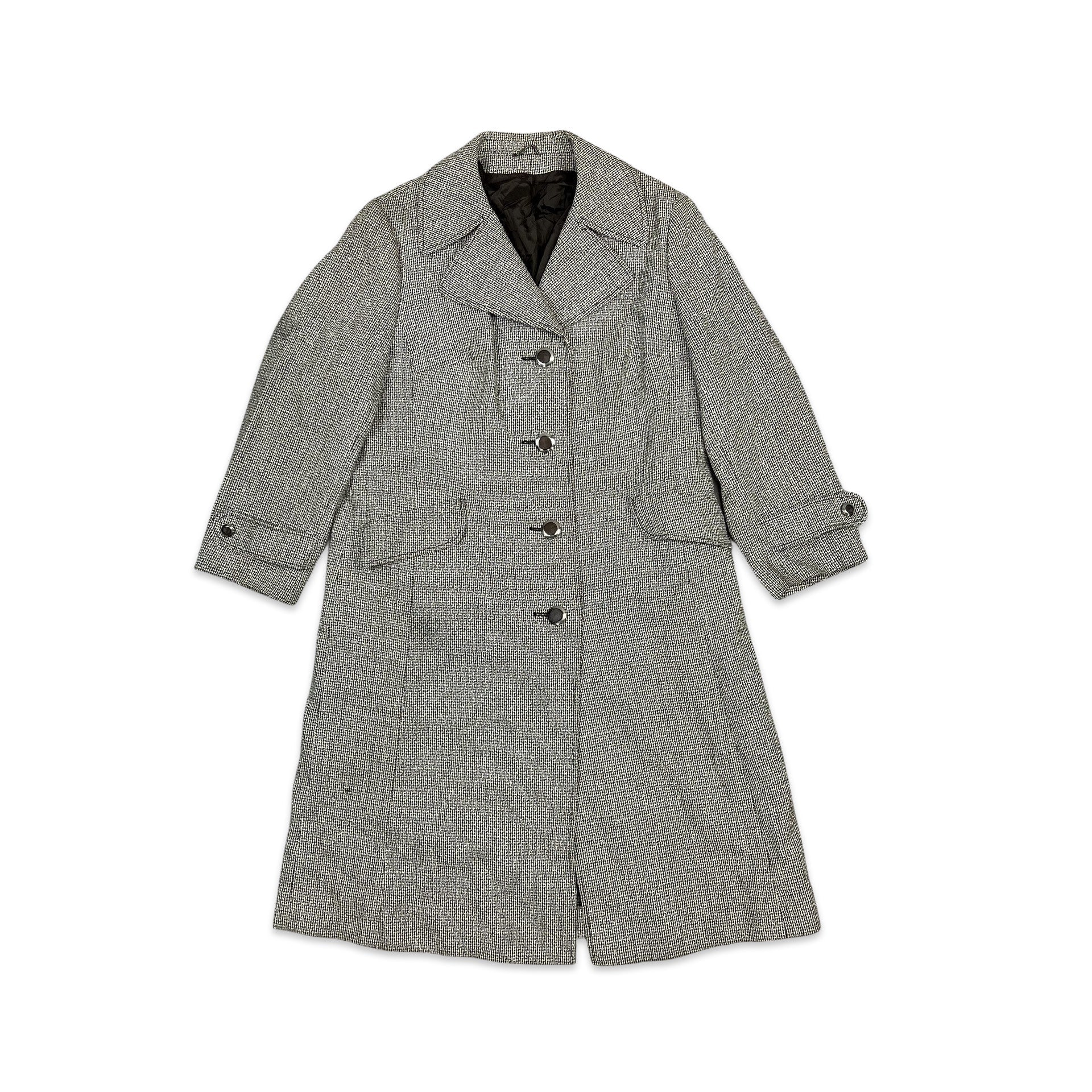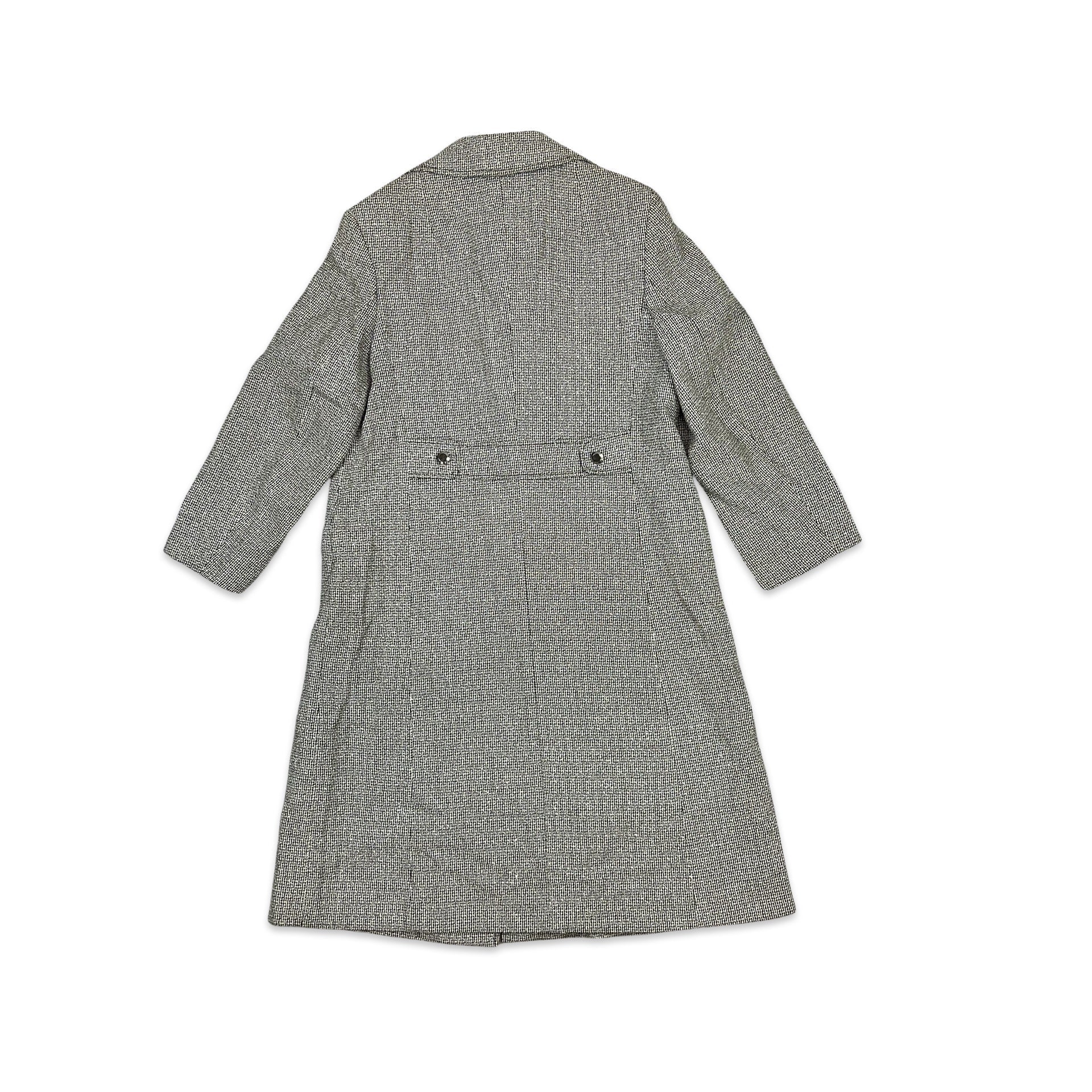 Vintage Wool Midi Coat Tweed Brown Cream 12 14