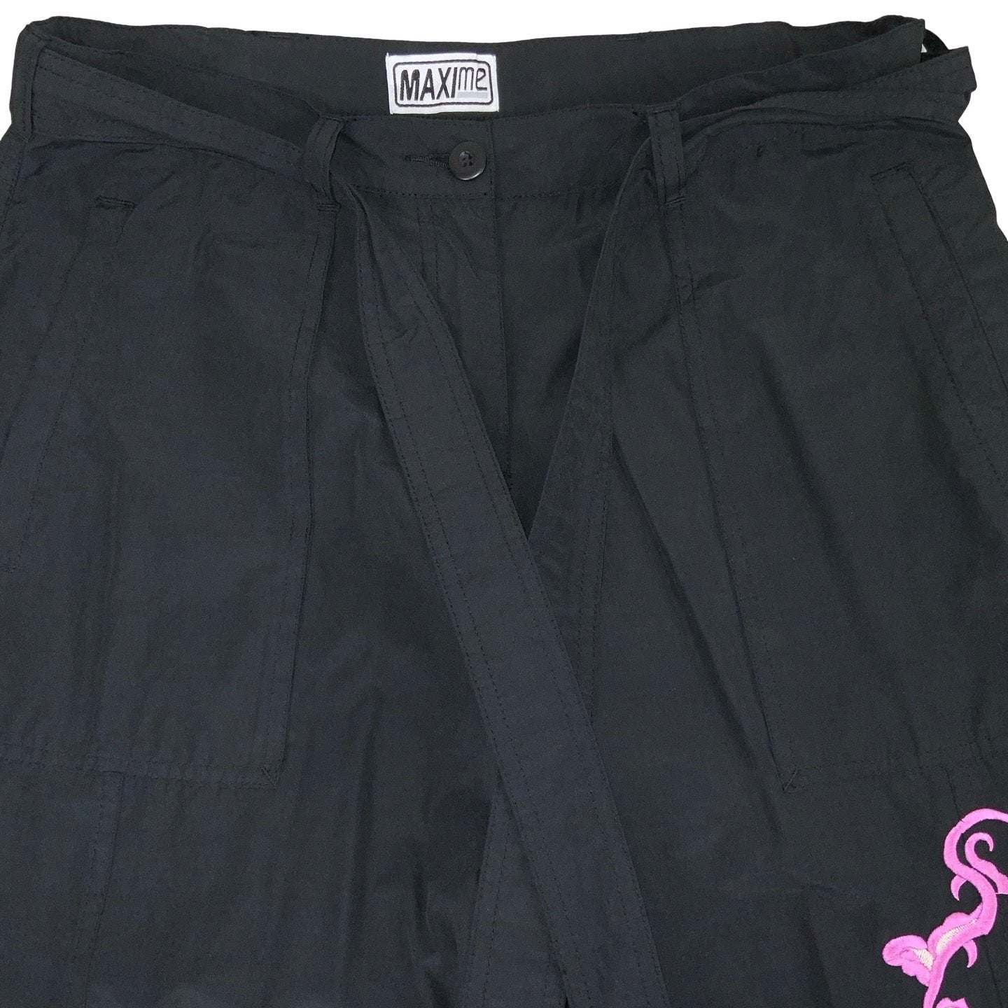 Vintage Y2K 90s Maxi Me Black Japanese Embroidered Cargo Joggers 36W 30L