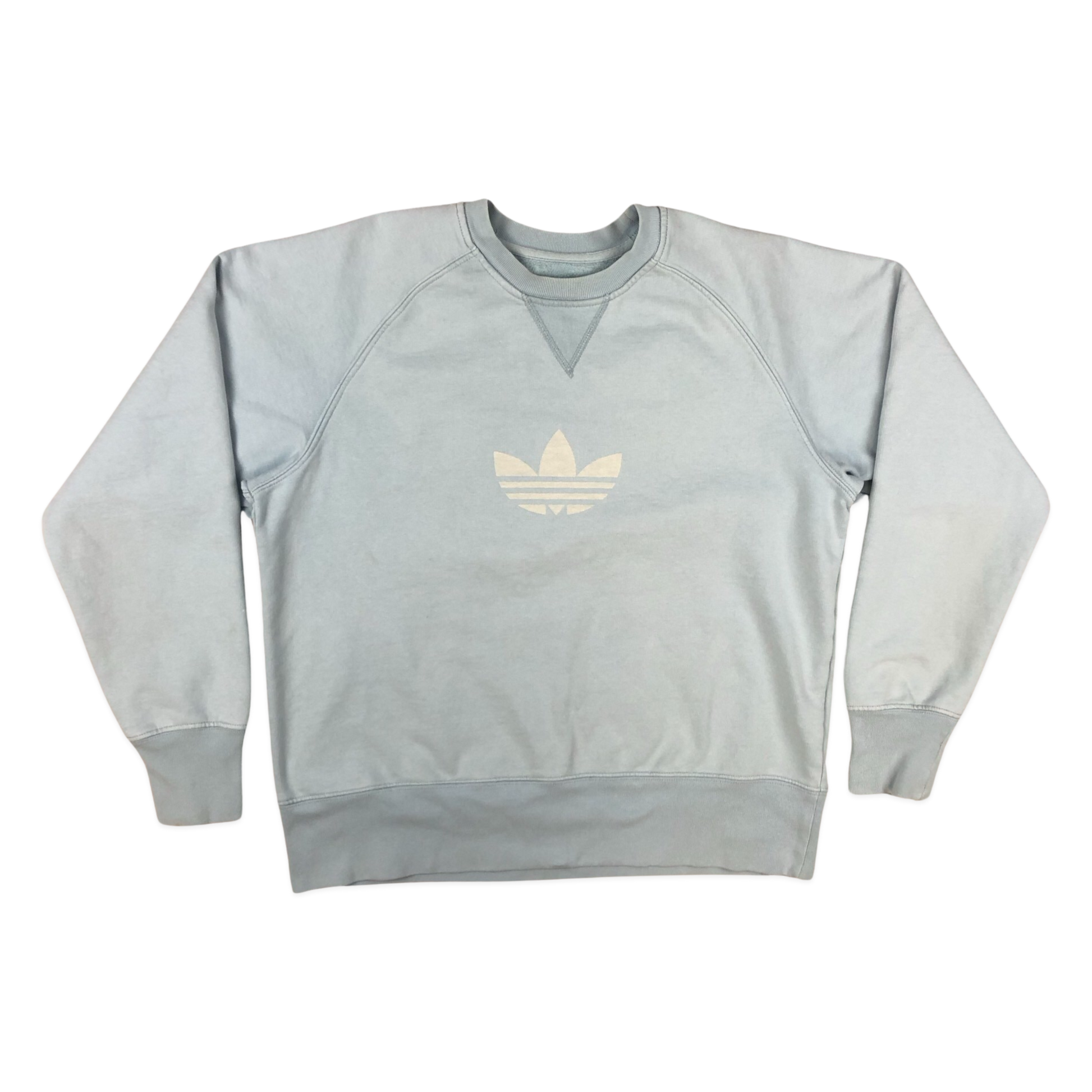 Vintage 2002 Adidas sweatshirt in baby blue with white trefoil print over centre chest. Heavyweight feel.