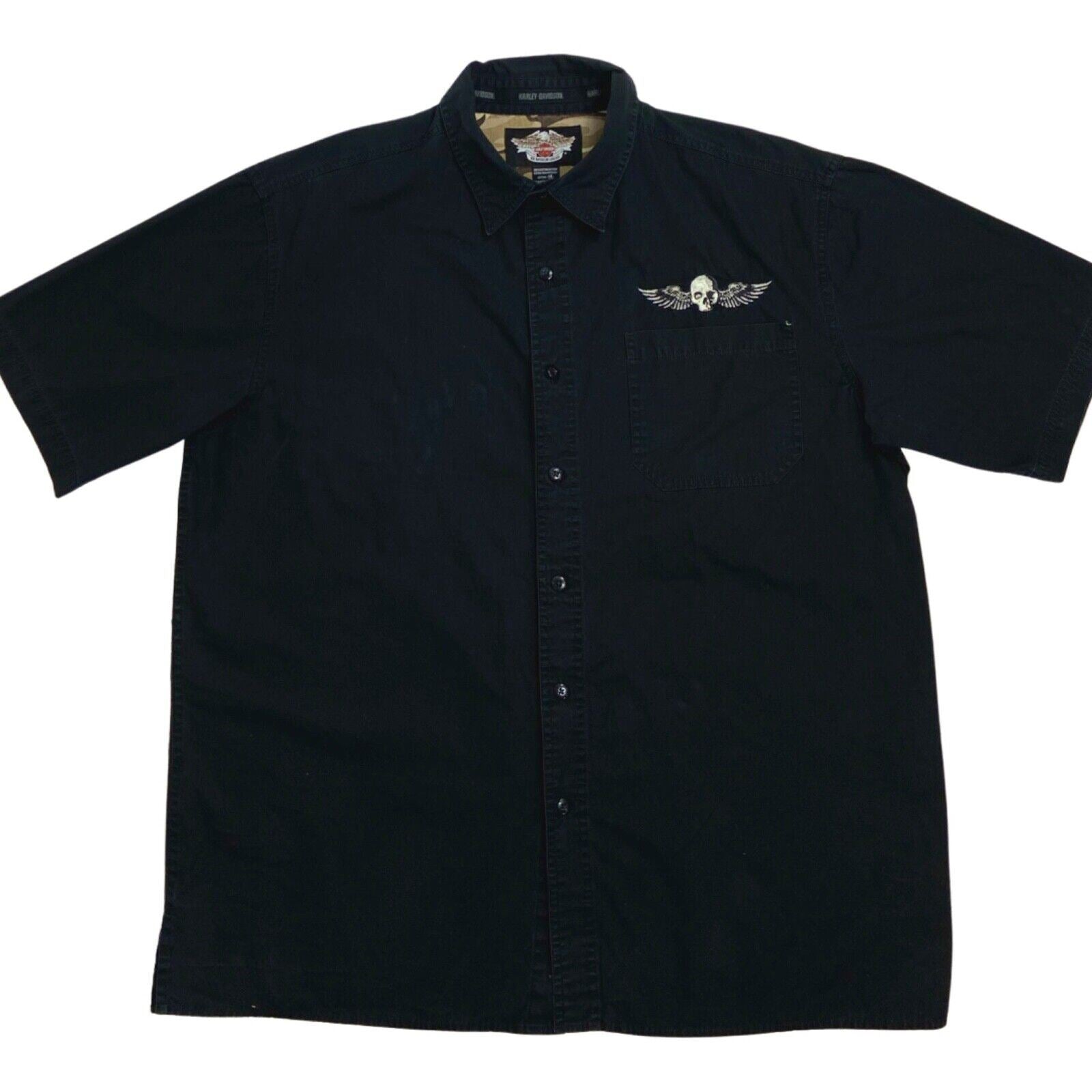 Vintage Y2K Black Harley Davidson Embroidered Skull Shirt XL