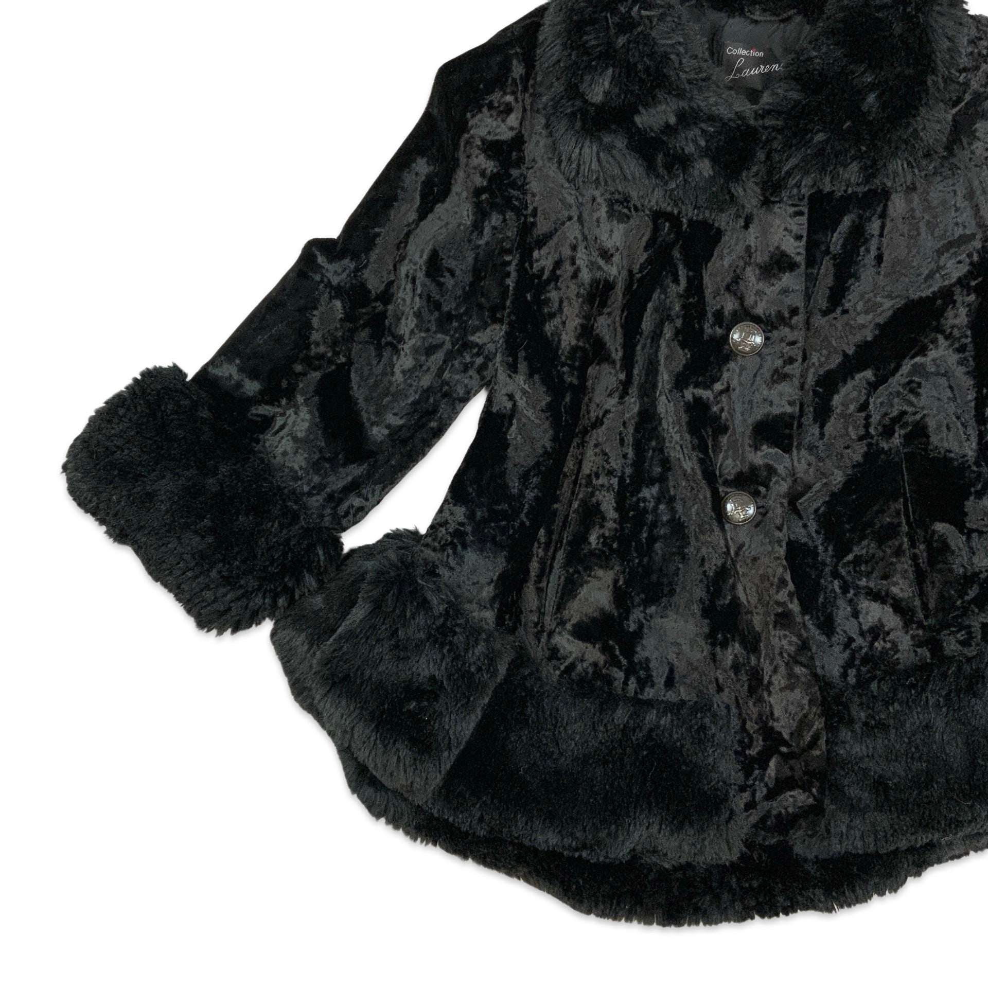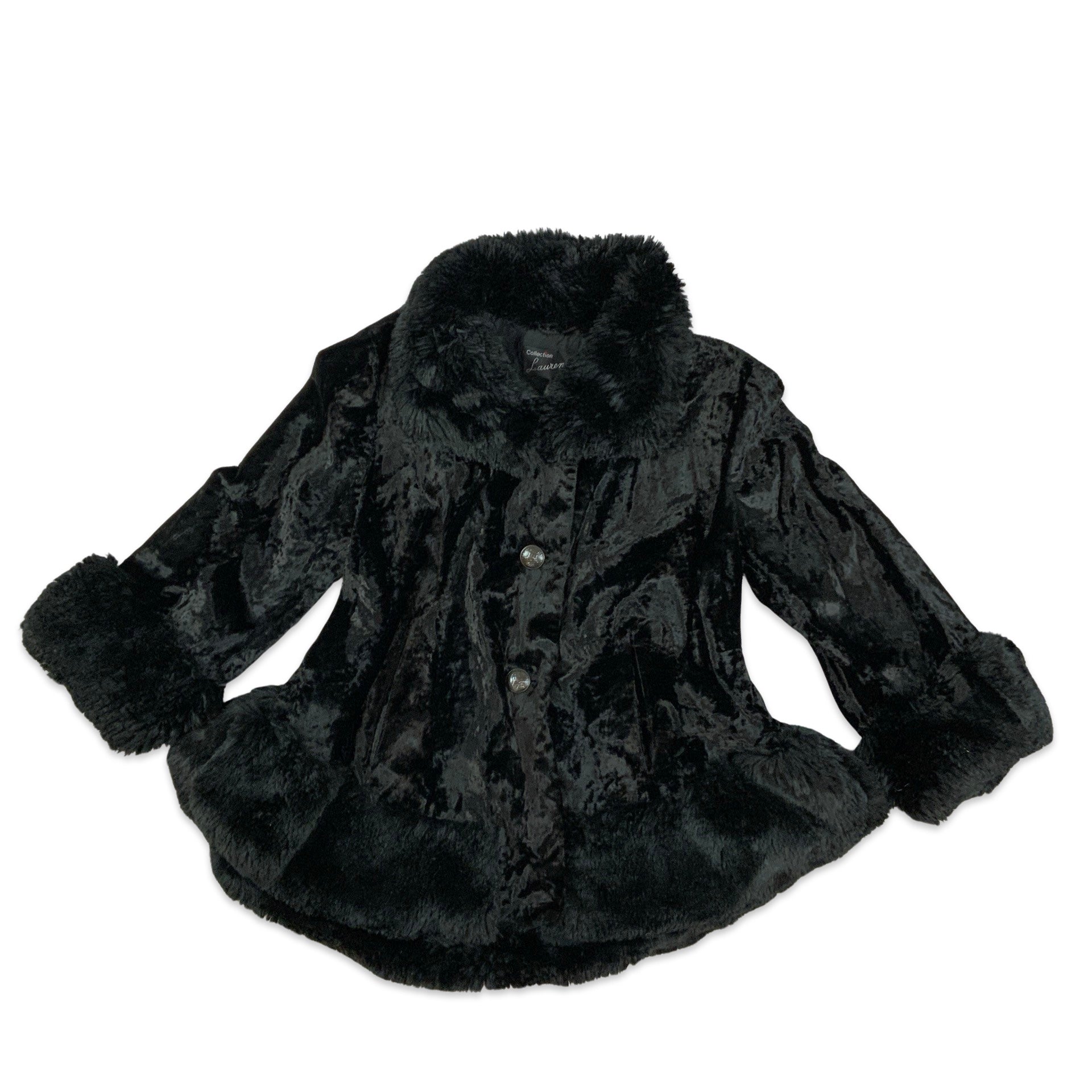 Vintage Y2K Black Velvet Faux Fur Princess Coat 14 16