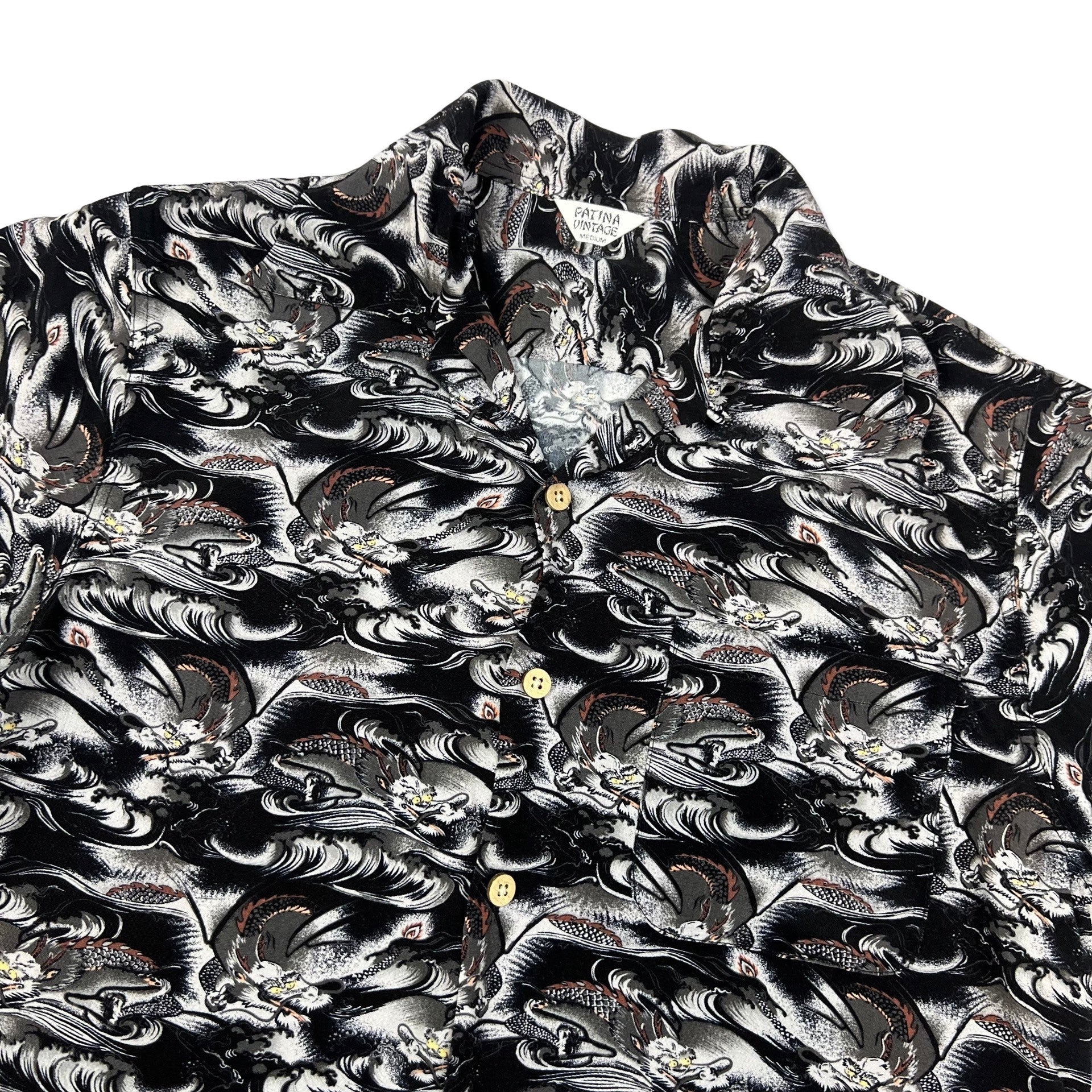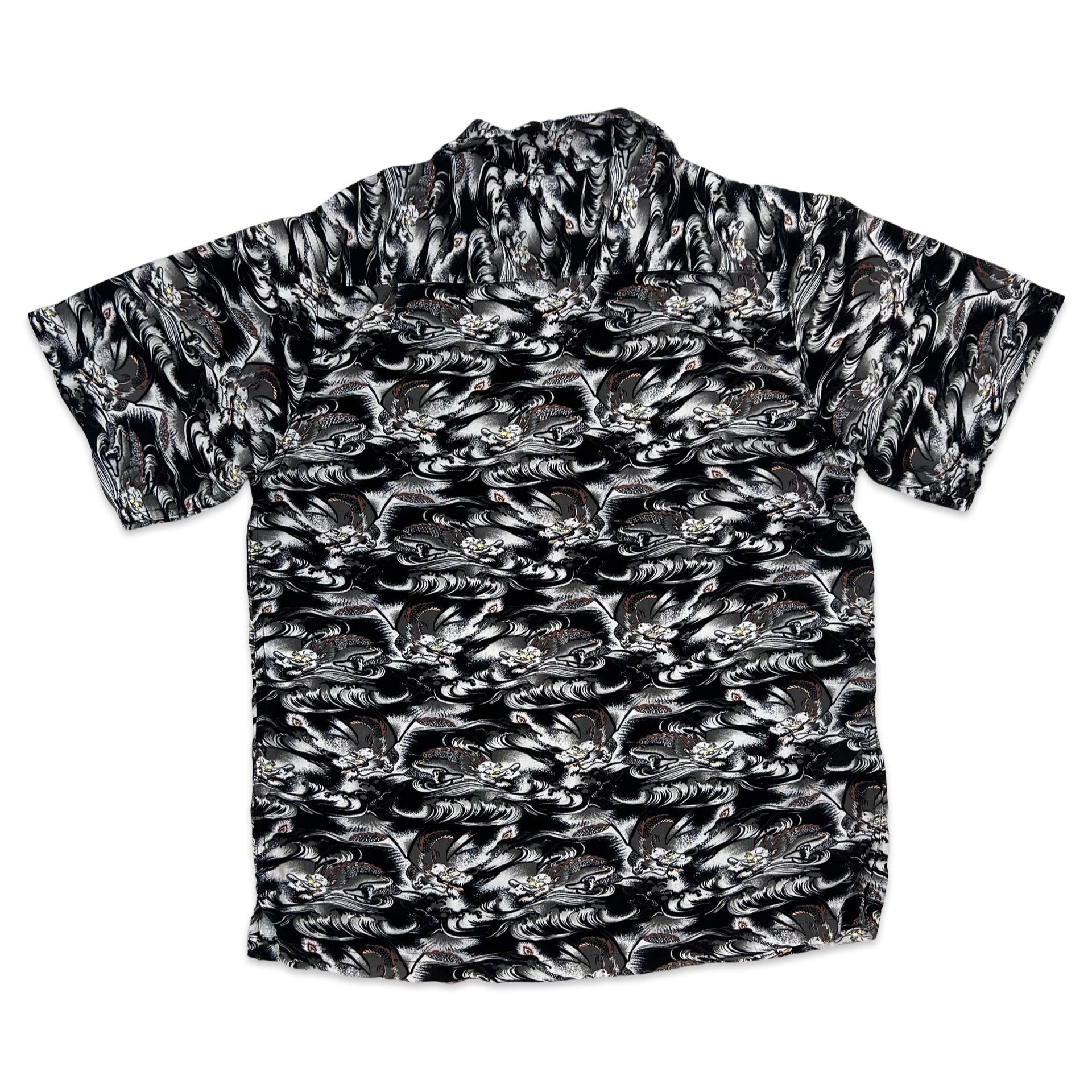 Vintage Y2K Black & White Dragon Print Hawaiian Shirt S M