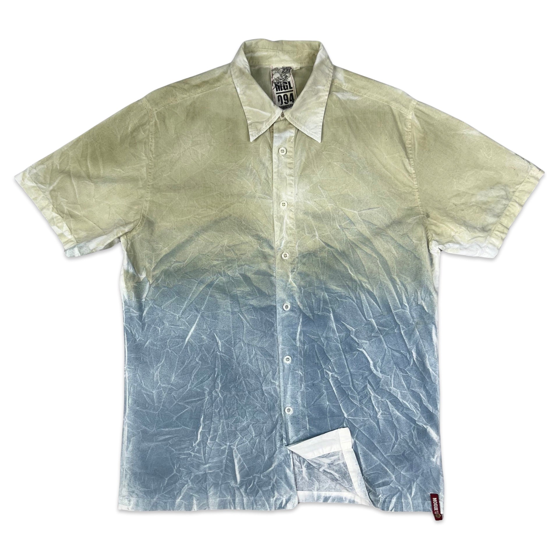 Vintage Y2K Blue and Green Gradient Print Shirt S M
