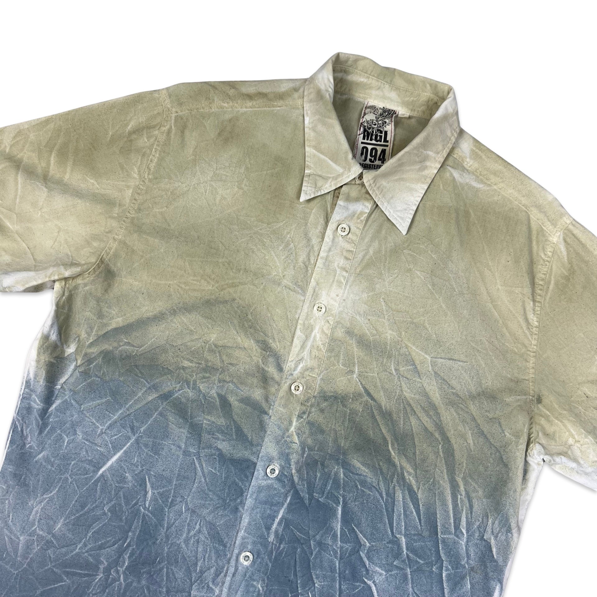 Vintage Y2K short sleeve shirt in blue and green with white faux crease print.