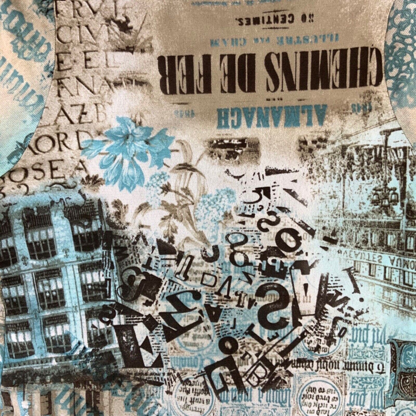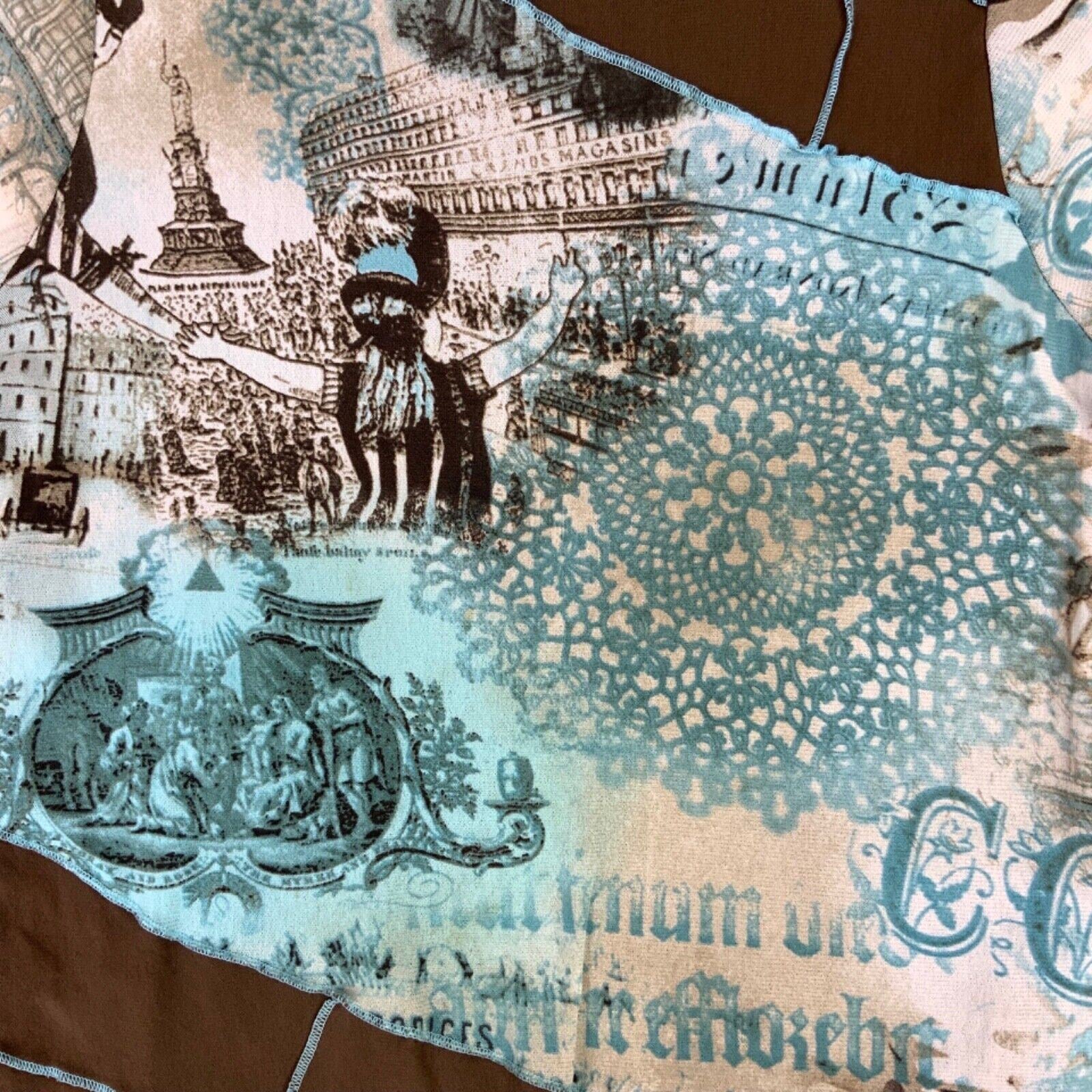 Vintage Y2K Blue Brown Graphic Print Mesh Contrast Stitch Top 10 12 S M