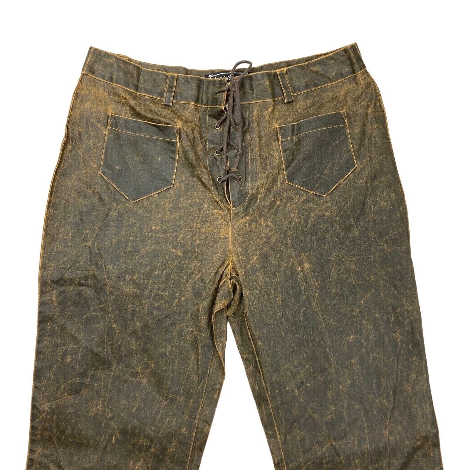 Vintage Y2K Brown Distressed Leather Look Flared Lace Up Trousers 8 10 S
