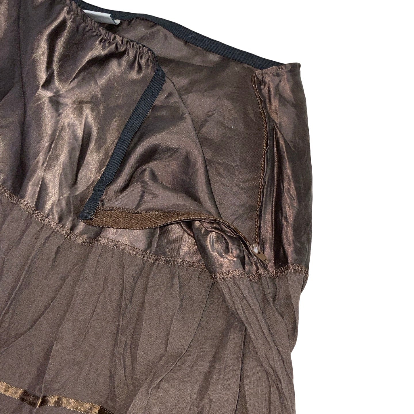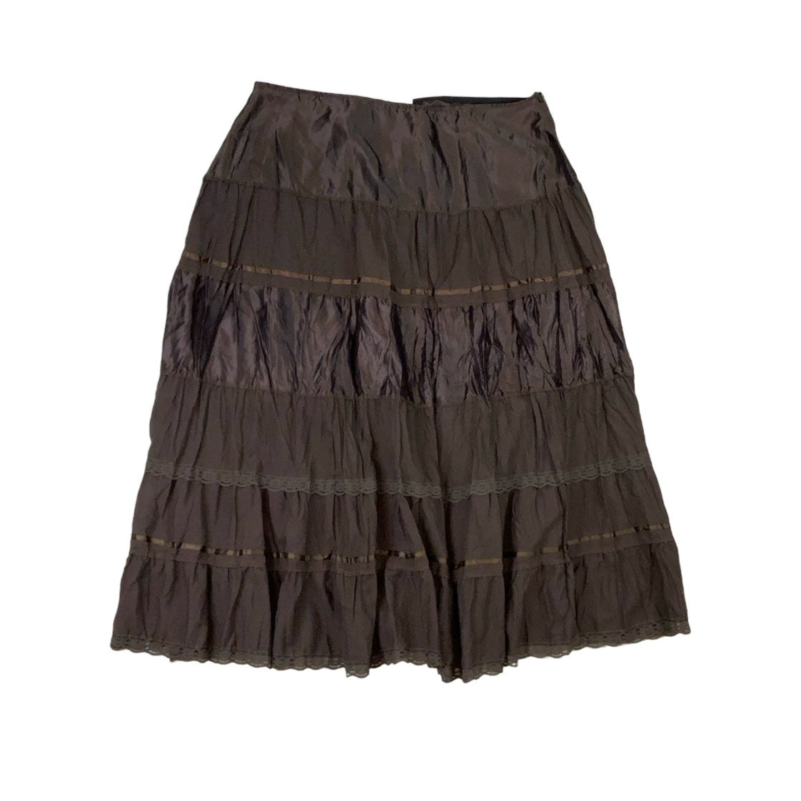 Vintage Y2K ‘CANDA’ Brown Tiered Patchwork Boho Midi Skirt 16 18