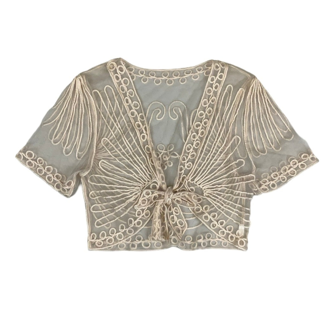 Vintage Y2K Cream Floral Embroidered Crop Tie-Top Bolero Blouse 6 8 XS