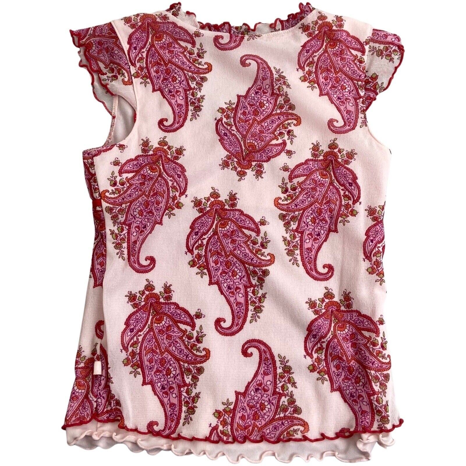 Vintage Y2K Pink Red Paisley Floral Mesh Top 6 8 XS S