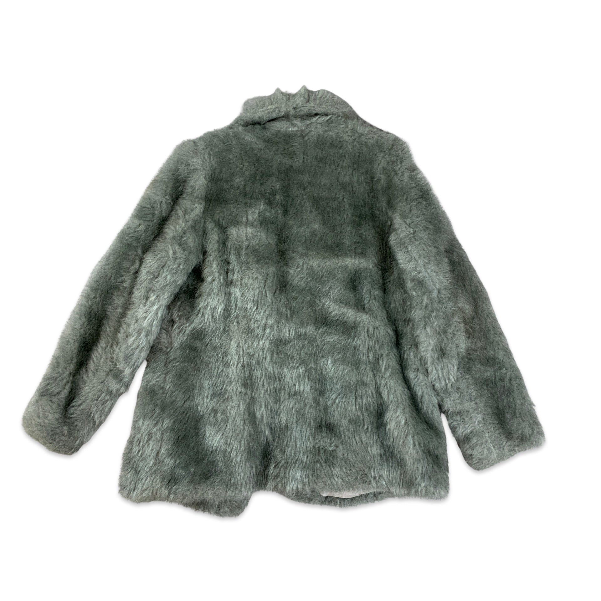 Vintage Y2K Silver Grey Faux Fur Coat 10 12 14
