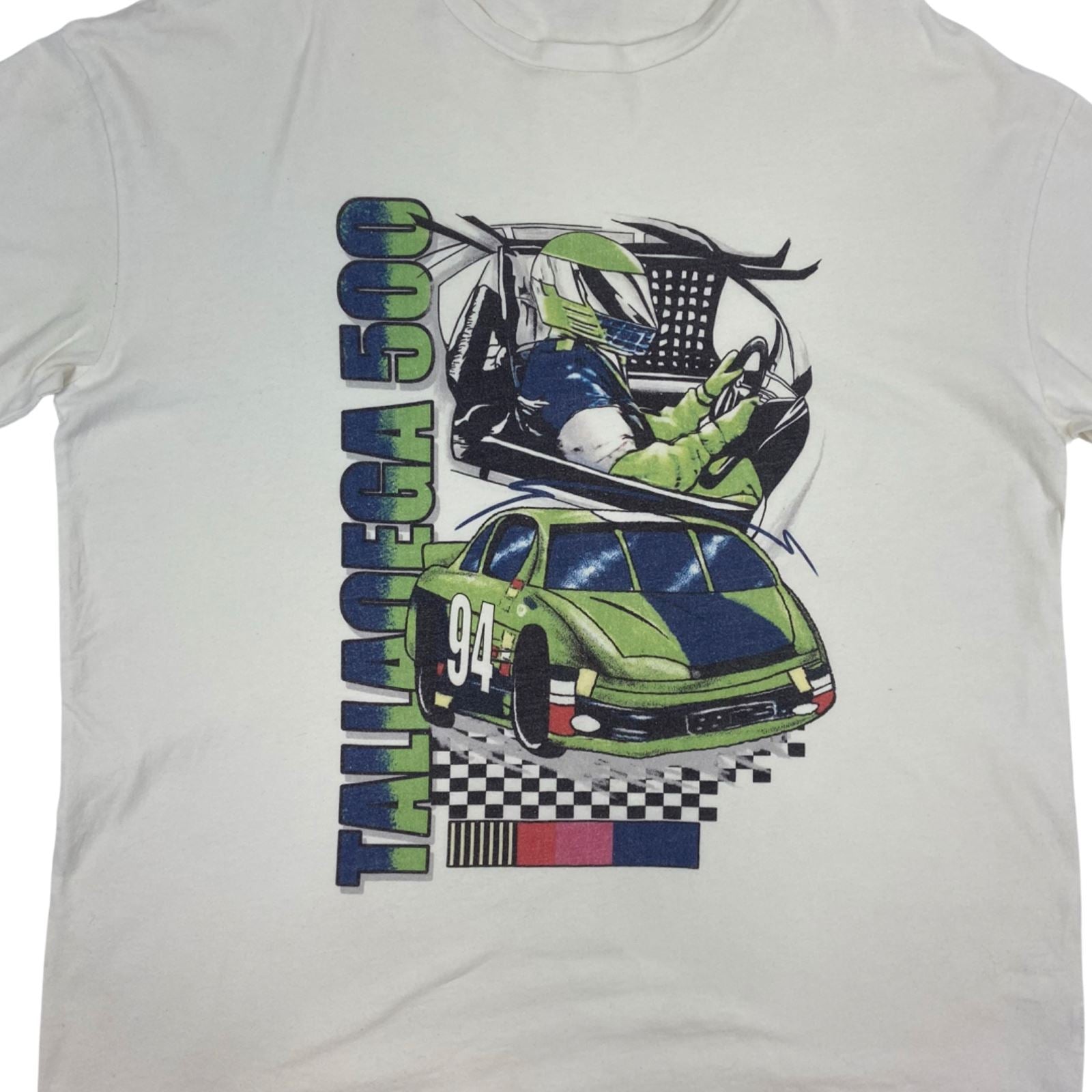 Vintage Y2K White Nascar Graphic Printed T-shirt L