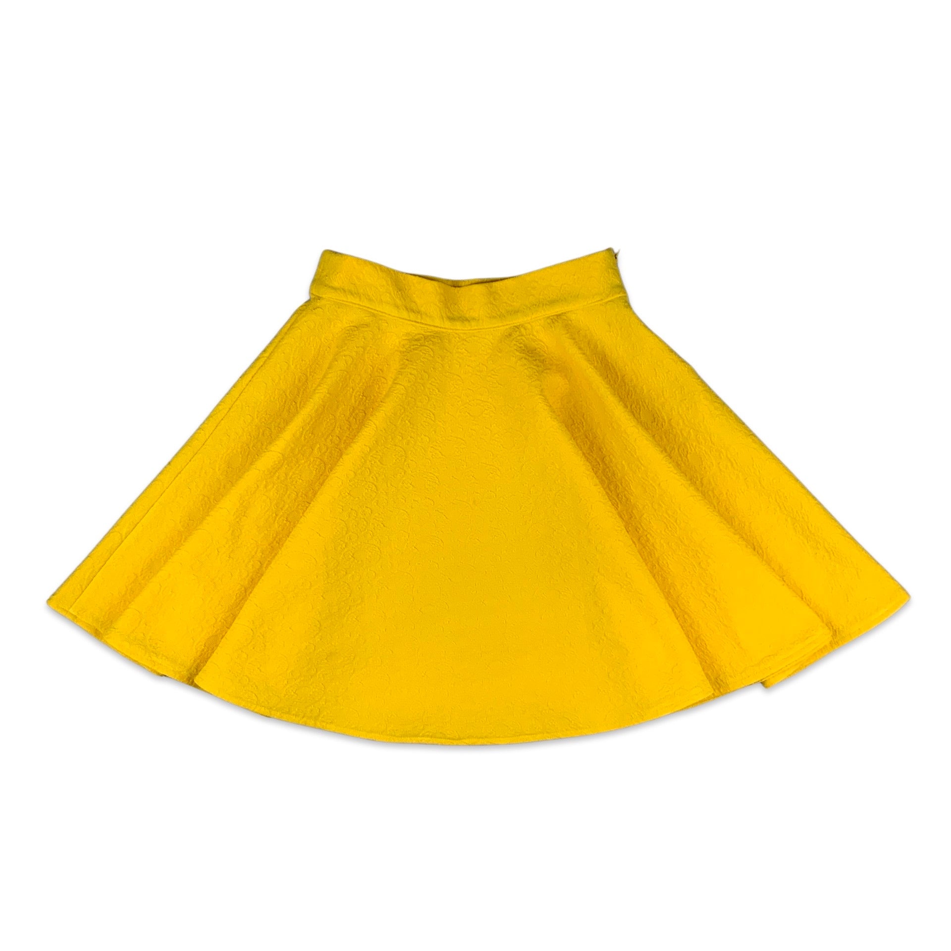 Vintage 60s style yellow midi skirt with floral theme textured embossing throughout. Zip fastening.