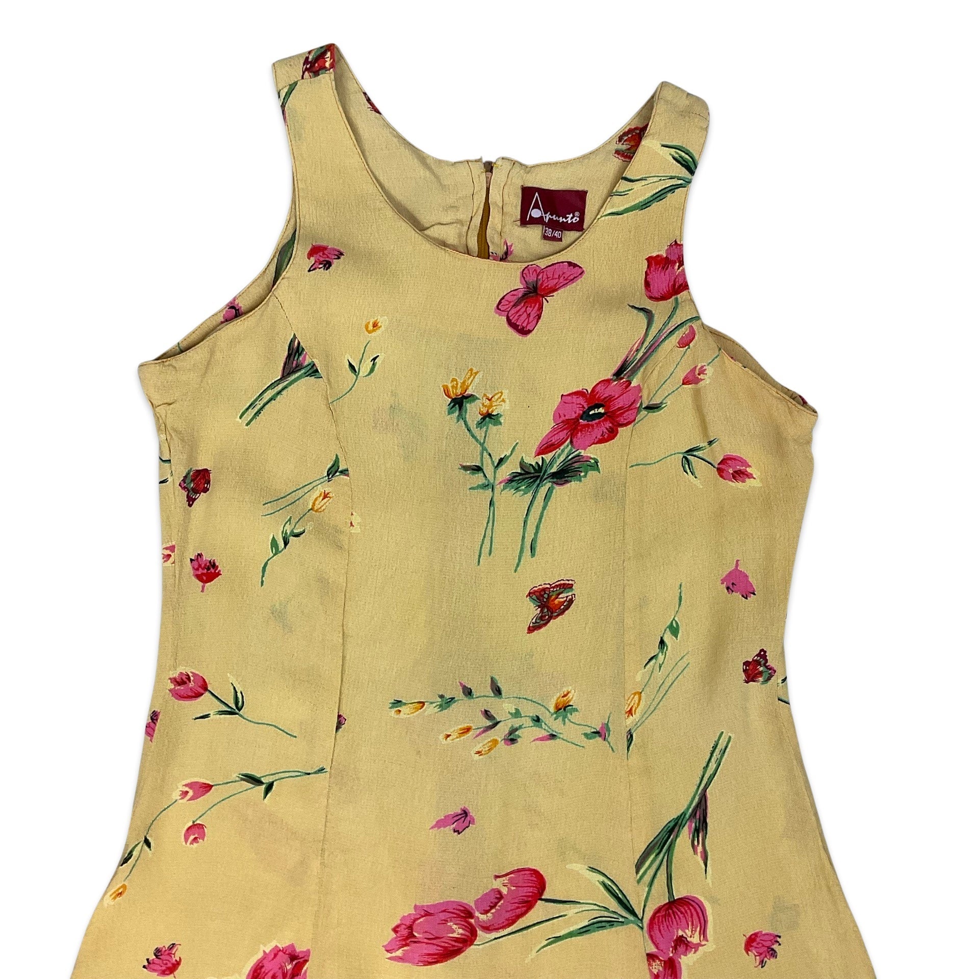 Vintage Yellow & Pink Floral Maxi Dress 10