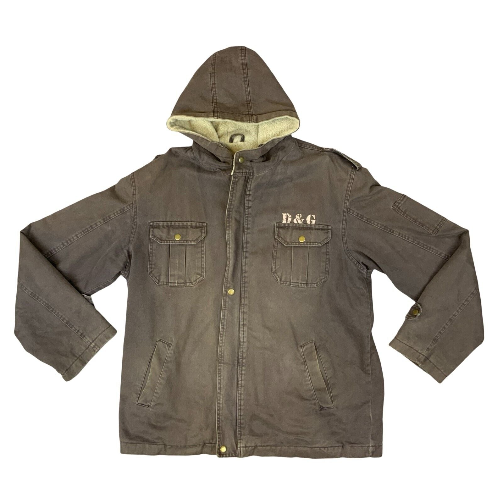VTG 00s DOLCE & GABBANA BROWN HOODED SHERPA LINED FIELD UTILITY JACKET M L