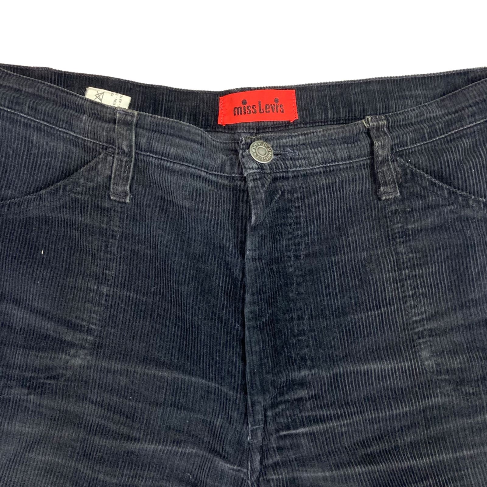 VTG 1970s BIG E MISS LEVIS LADIES CORDUROY CORDS FLARES BLACK GOLD TAB 30W 31L