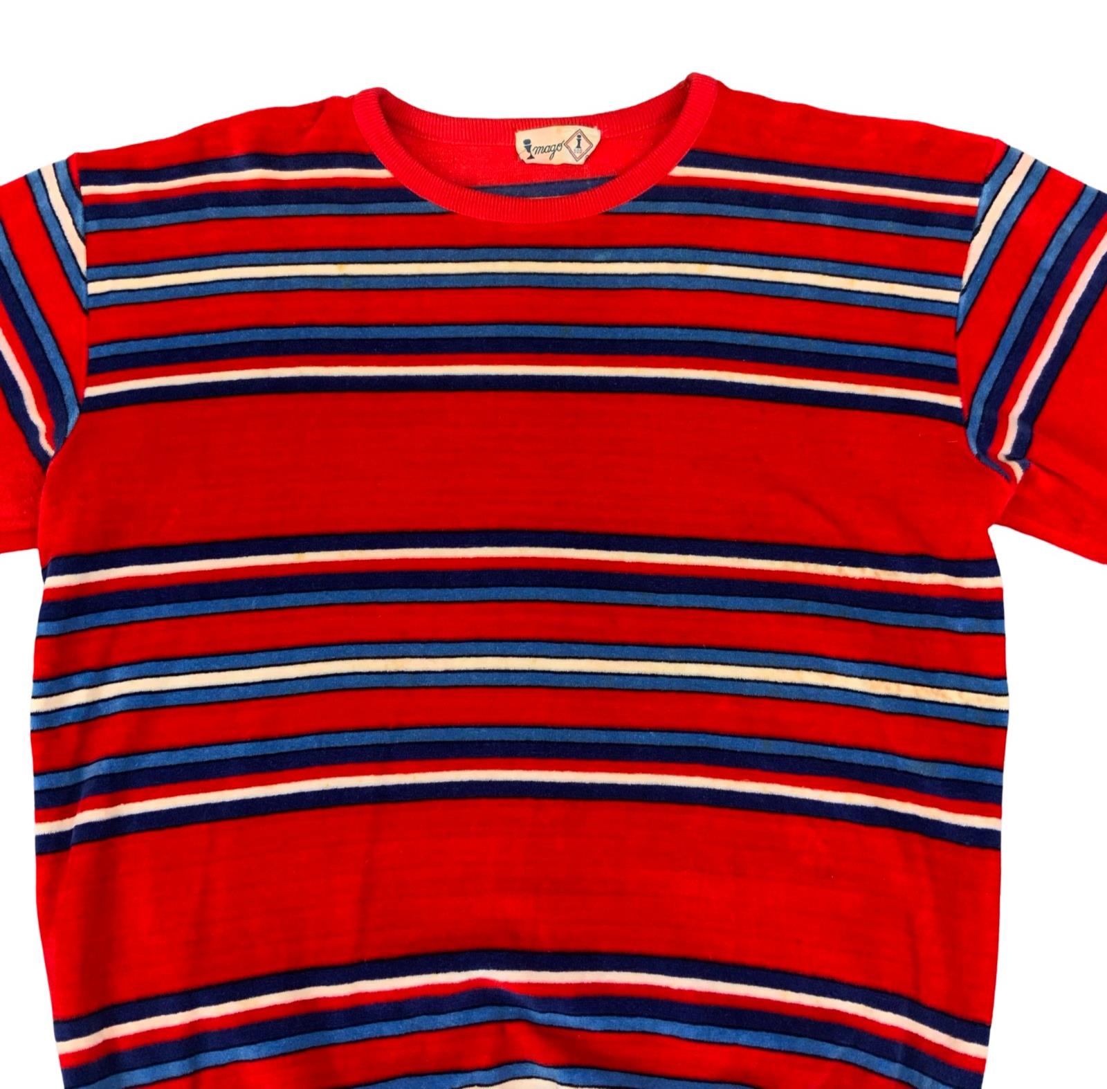 VTG 1970s IMAGO RETRO RED WHITE BLUE STRIPED VELOUR SWEATSHIRT MADE IN ITALY S M