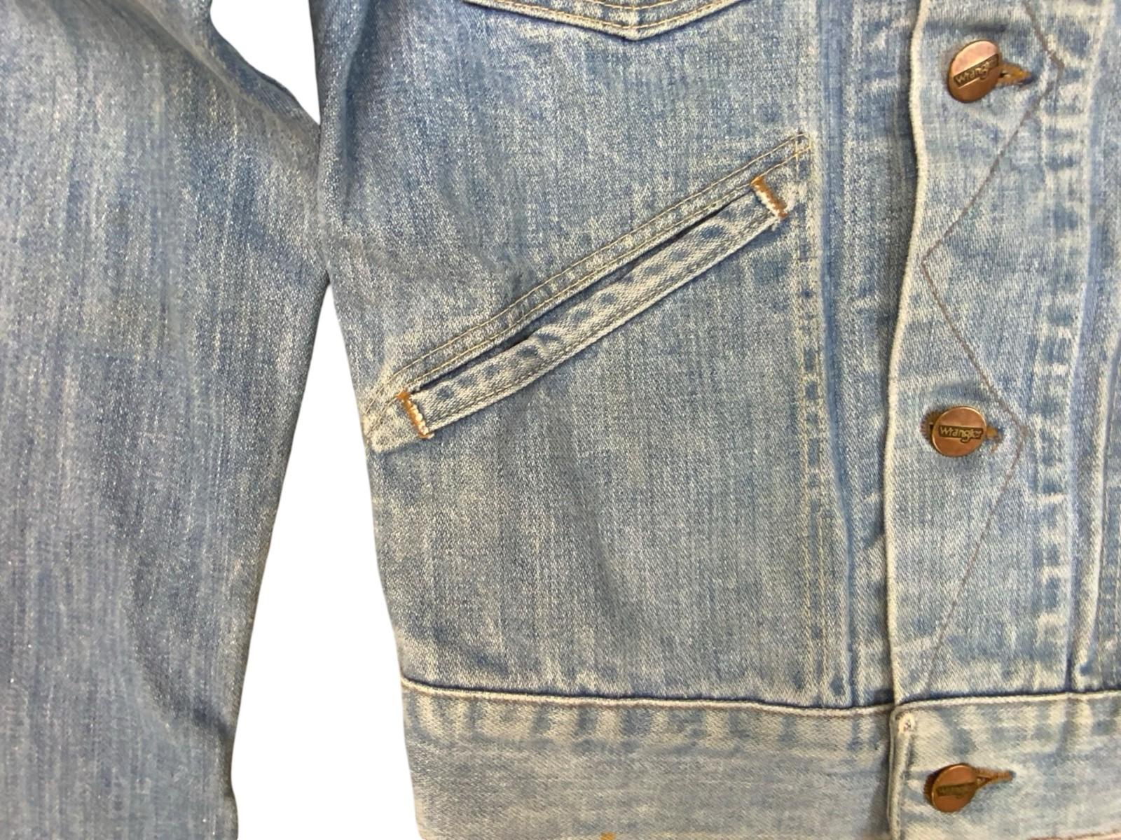 VTG 1970s WRANGLER BROKEN TWILL DENIM JACKET NICE LIGHT BLUE FADES XS