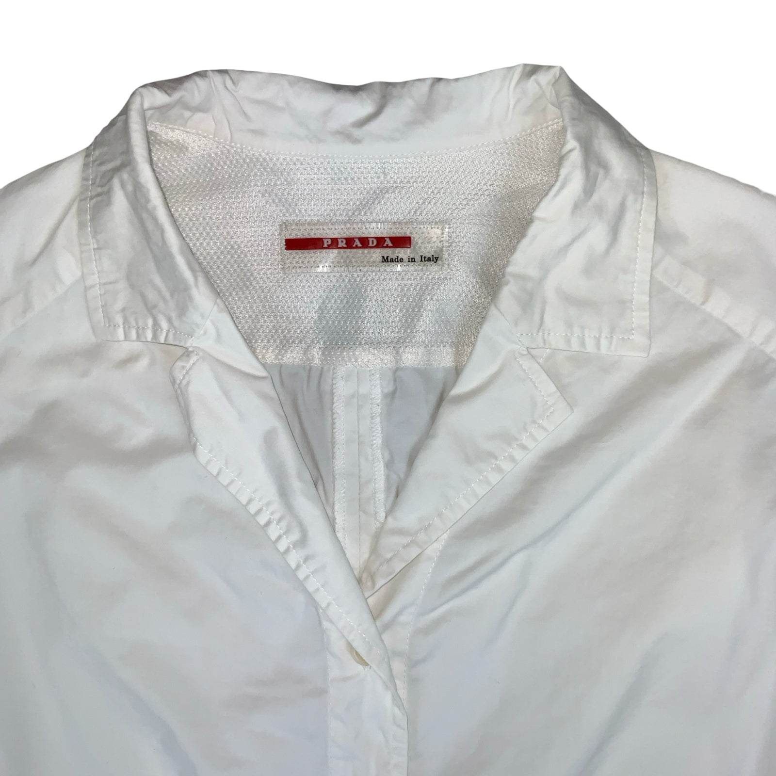 Vintage Prada Italy sports jacket in white with a notched label collar neckline, front button fastening, pockets and long sleeves with buttoned cuffs. Overall preppy vibe, made in Italy from 98% cotton and 2% other fibres. In great condition, barely worn.