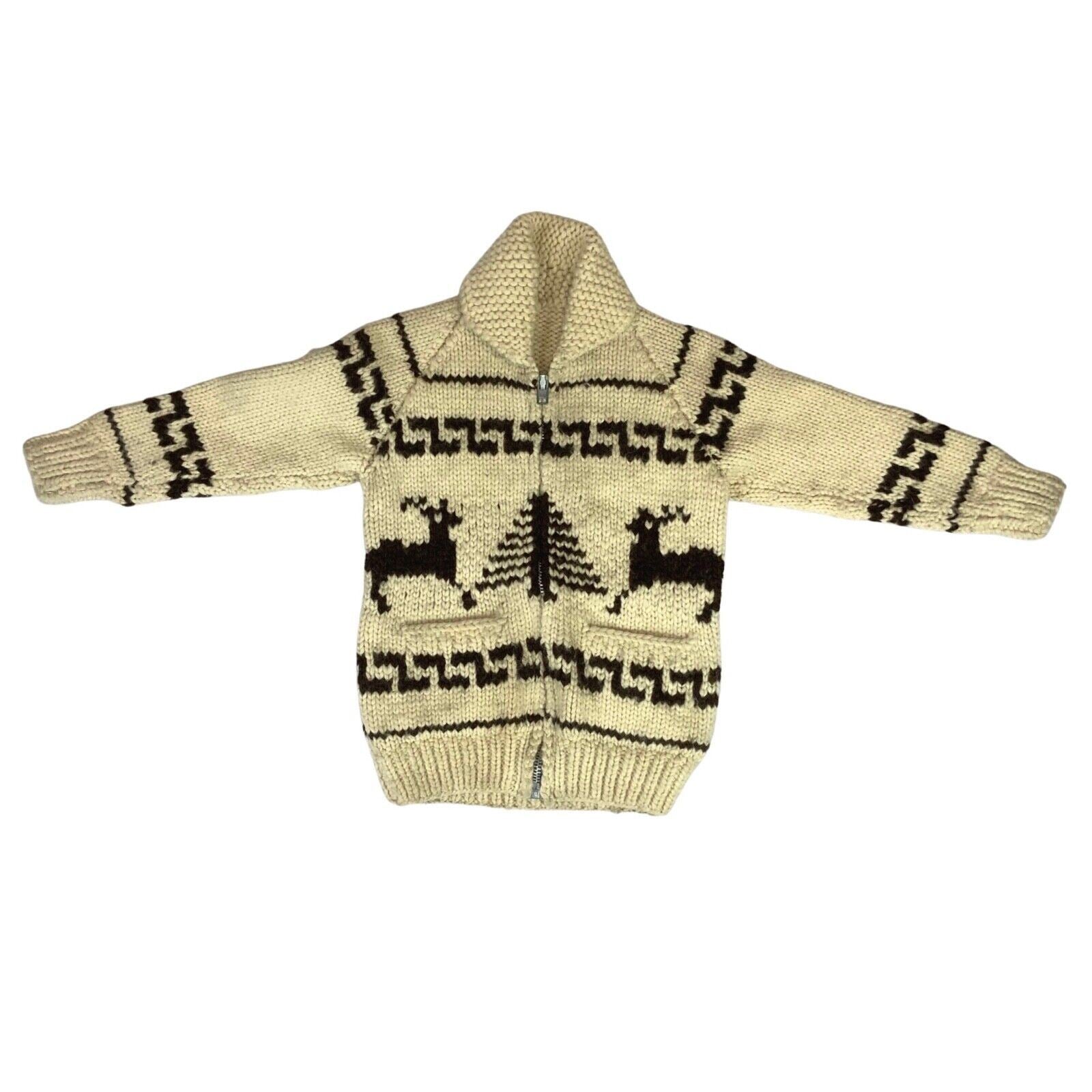 VTG 70S CHILDRENS NATIVE CANADIAN COWICHAN INDIAN CARDIGAN ROCKABILLY 34” (30”)