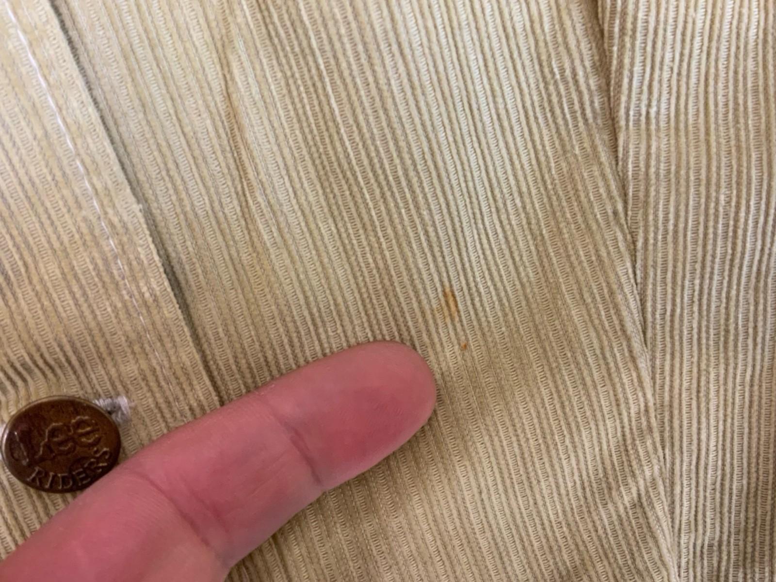 Here we have an awesome vintage 1970s LEE RIDERS ladies blouse made of fine corduroy, has brass lee riders buttons, short sleeves and cool oversized 70s collars, the colour is a yellow/green almost bright khaki