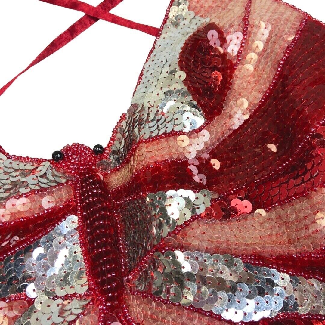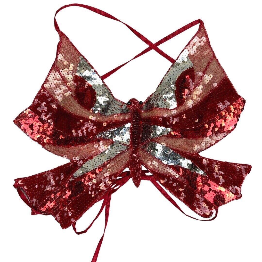 VTG 70s style 90s Y2K Red Embellished Disco Sequin Party Butterfly Top 8 10 S