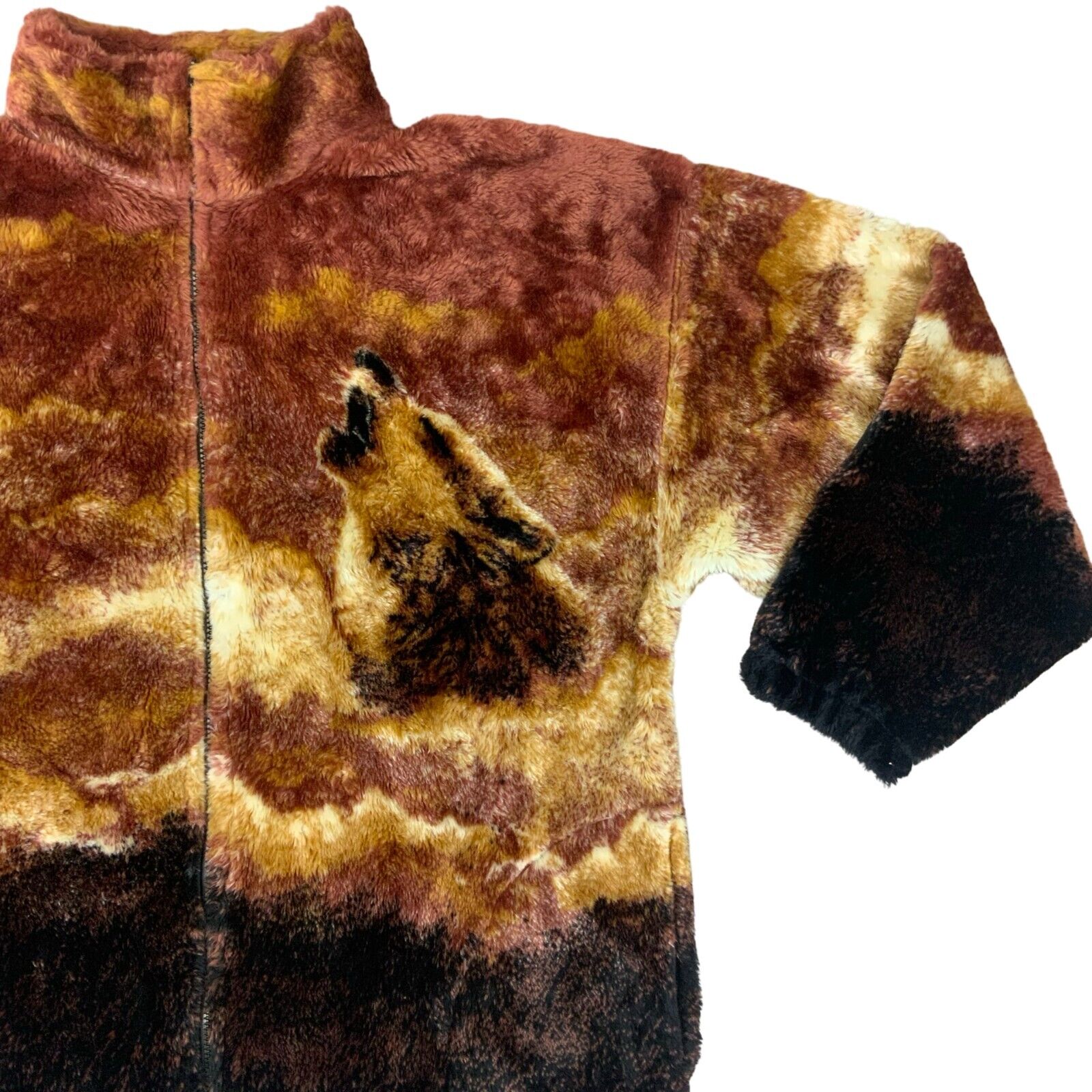 VTG 80s 90s BEAR RIDGE OUTFITTERS BROWN GRAPHIC BEAR FLEECE JACKET XXL