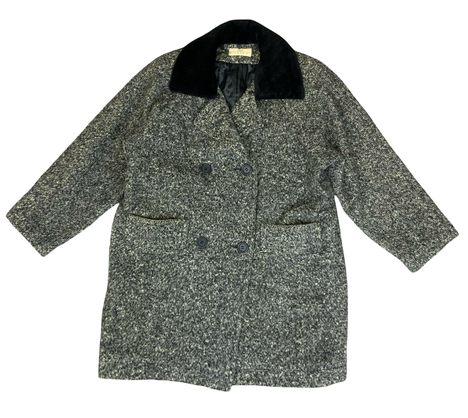 VTG 80s 90s 'GIVENCHY' GREY TWEED WOOL DETACHABLE COLLAR QUILT LINED COAT XXL