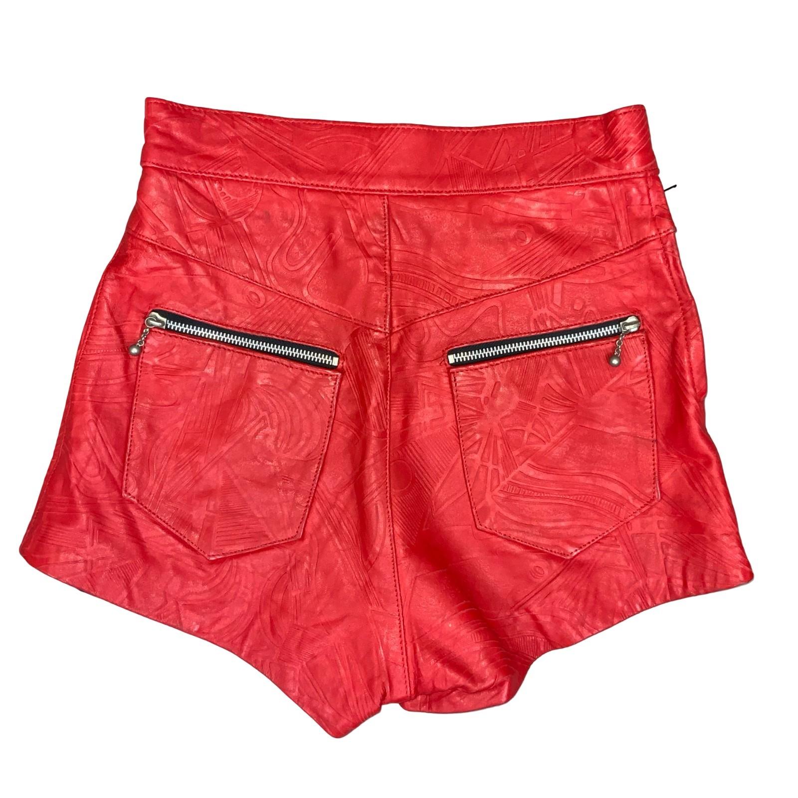 Vtg 80s 90s Red Leather High-Waist Patterned Party Hot Pants Shorts UK 8