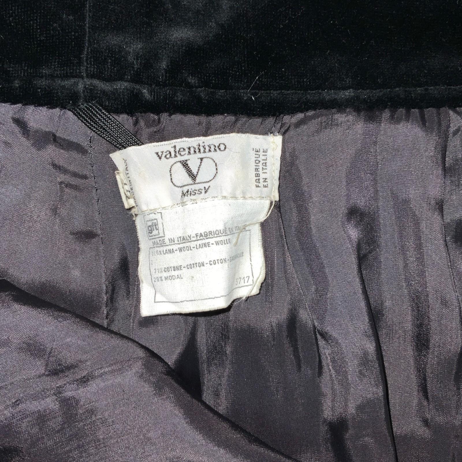 Vintage Valentino Miss V black pencil skirt made in Italy. It is from the ready-to-wear collection launched in the late 1960s, which makes this garment likely to be 1980s/90s. It is composed of 100% wool outer, and 71% cotton/29% modal lining. It is an elegantly designed skirt with a velvet-feel waistband, aesthetic button and sip front fastening, two side pockets and a soft internal lining. It is perfect for formal and business wear, but paired with the right items it can be worn casually. Versatile and excellent quality item which has lasted the test of time given its great condition.