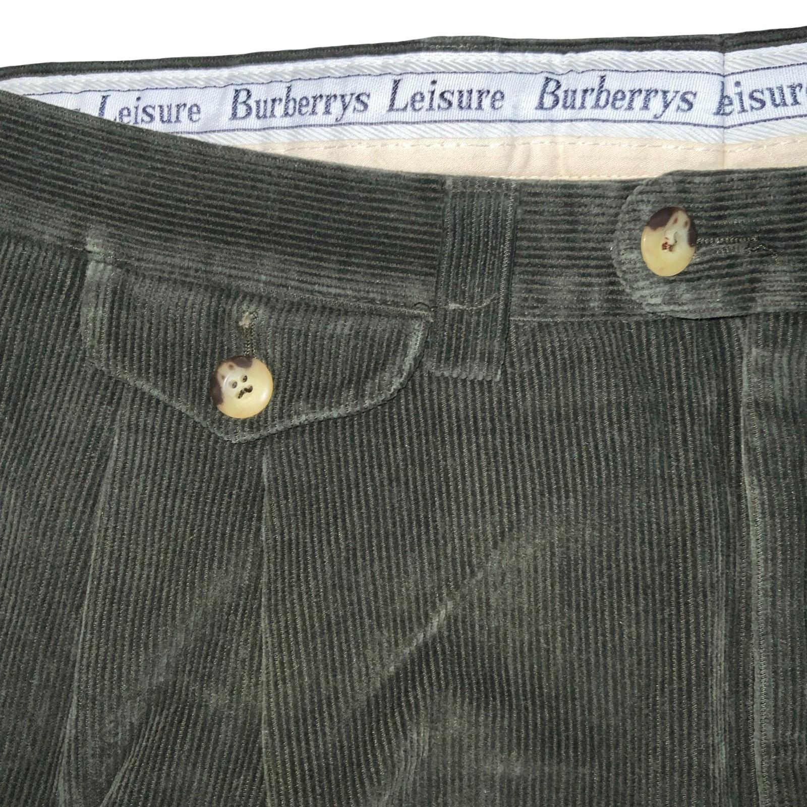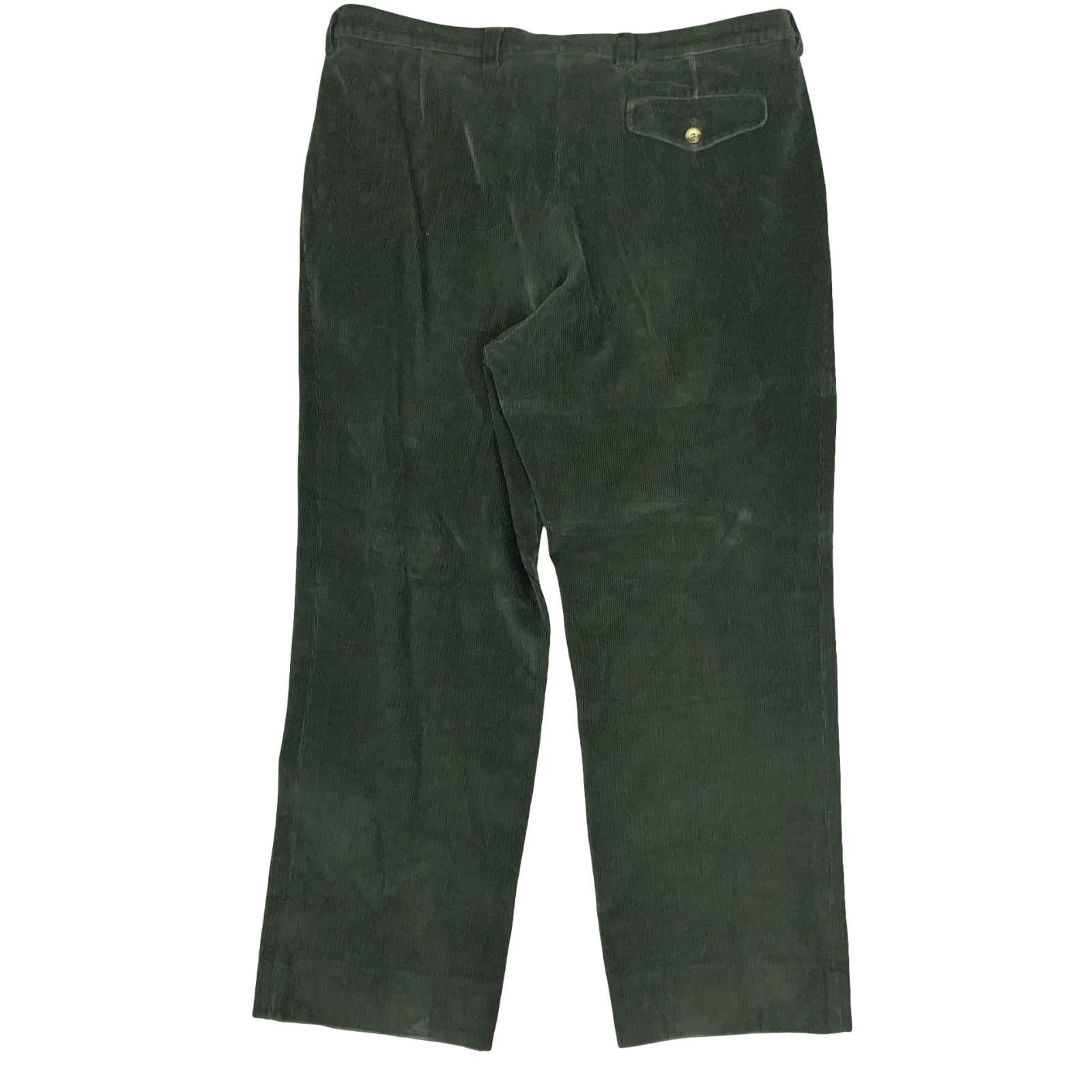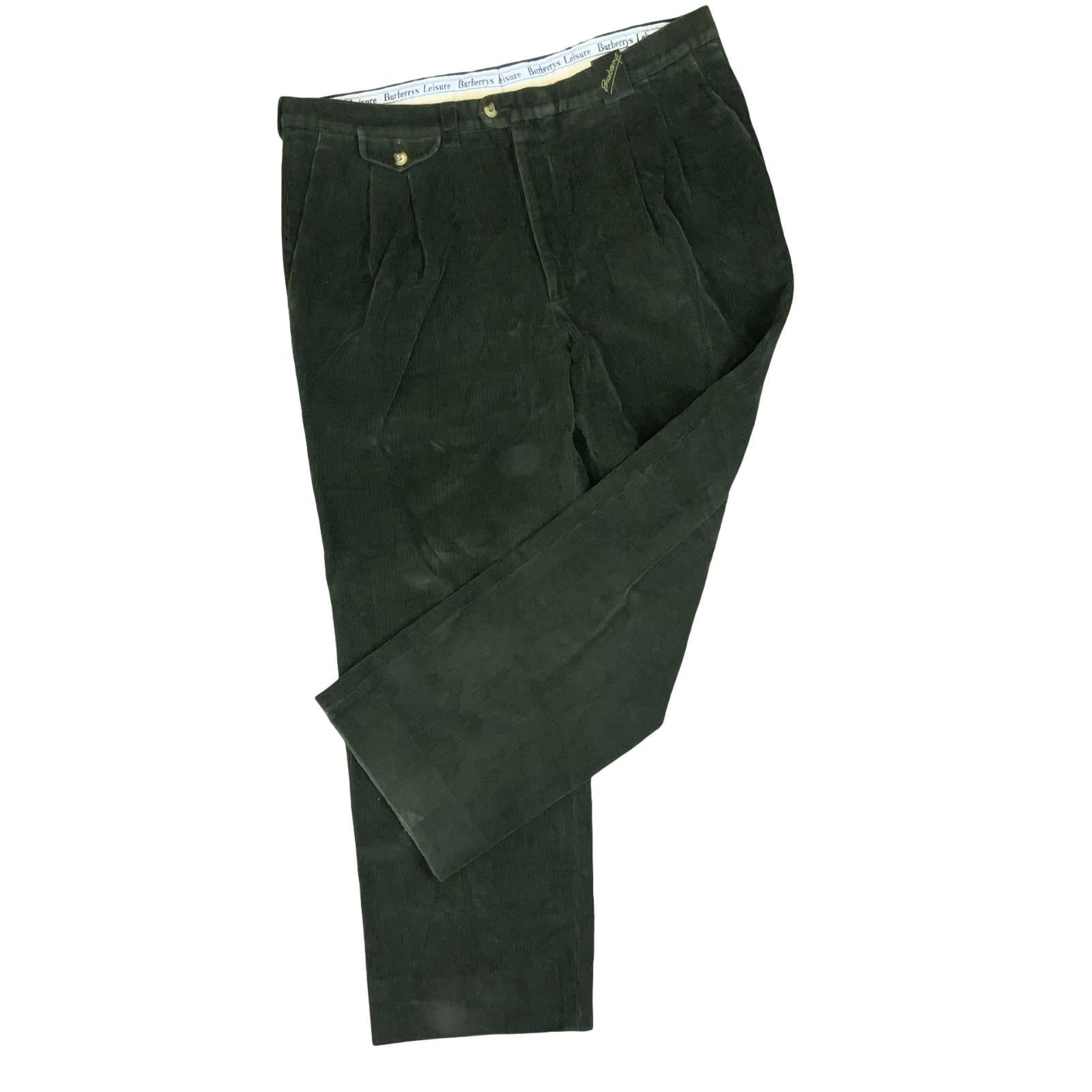 VTG 80s BURBERRYS LEISURE GREEN CORDUROY STRAIGHT-LEG RELAXED TROUSERS 36W 26L