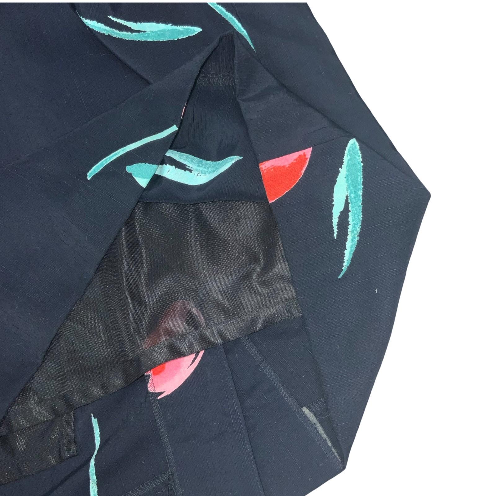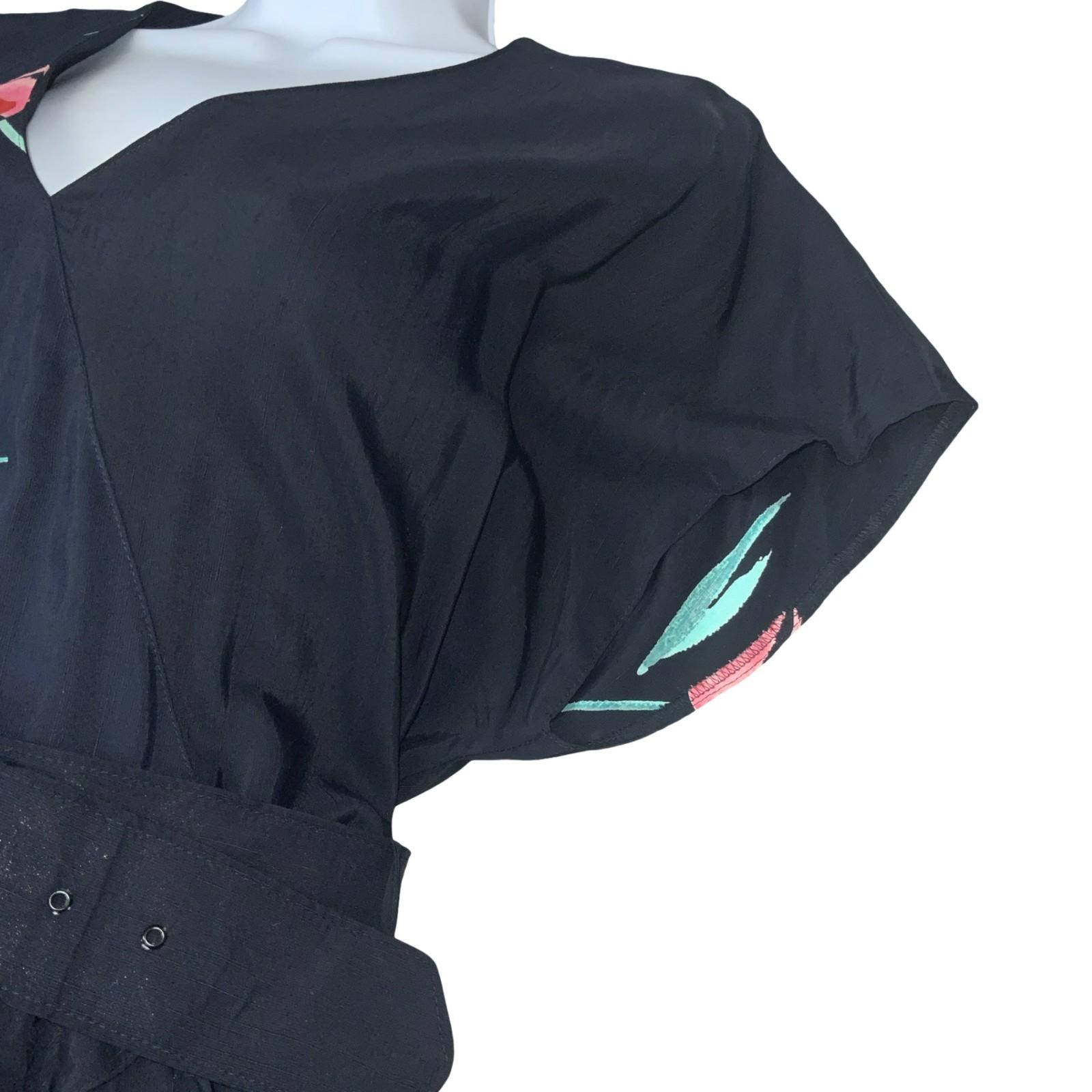 Vtg 80s 'Gila Grunert Creation' Black Red Tulip Wrap-Style Belted Midi Dress 12