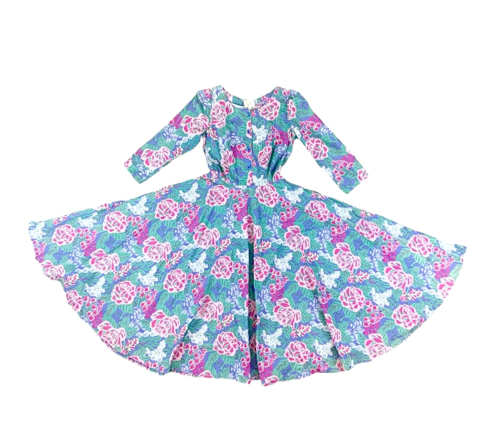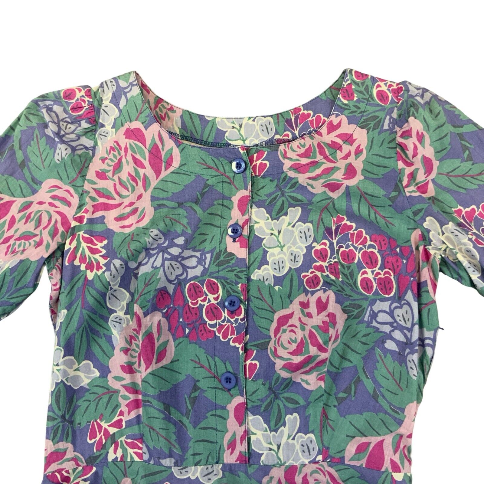 VTG 80s LAURA ASHLEY BLUE GREEN PURPLE FLORAL PLEATED MAXI DRESS UK 8 10