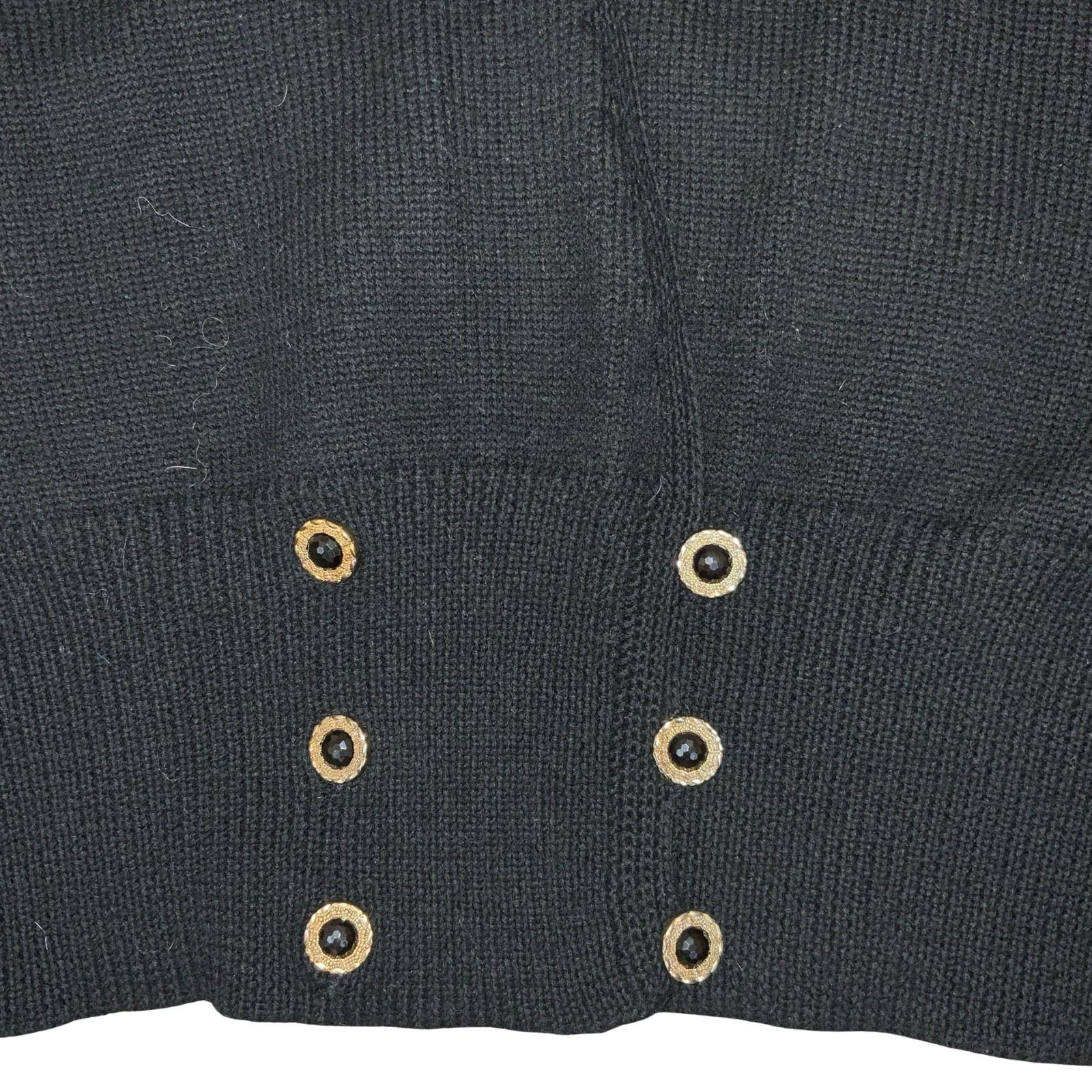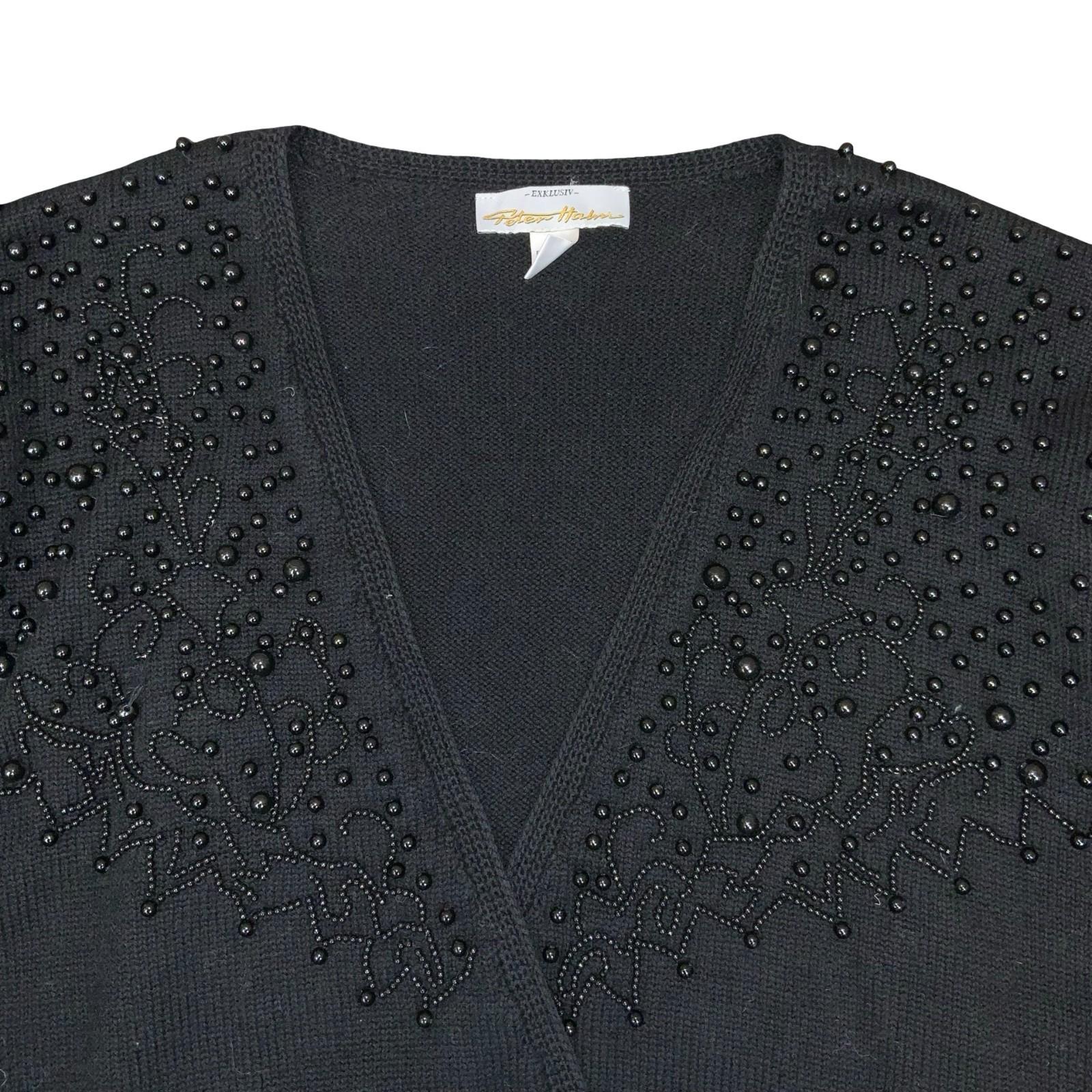 Vtg 80s Peter Hahn Black Beaded Embellished Double-Breasted Wool Cardigan UK 16