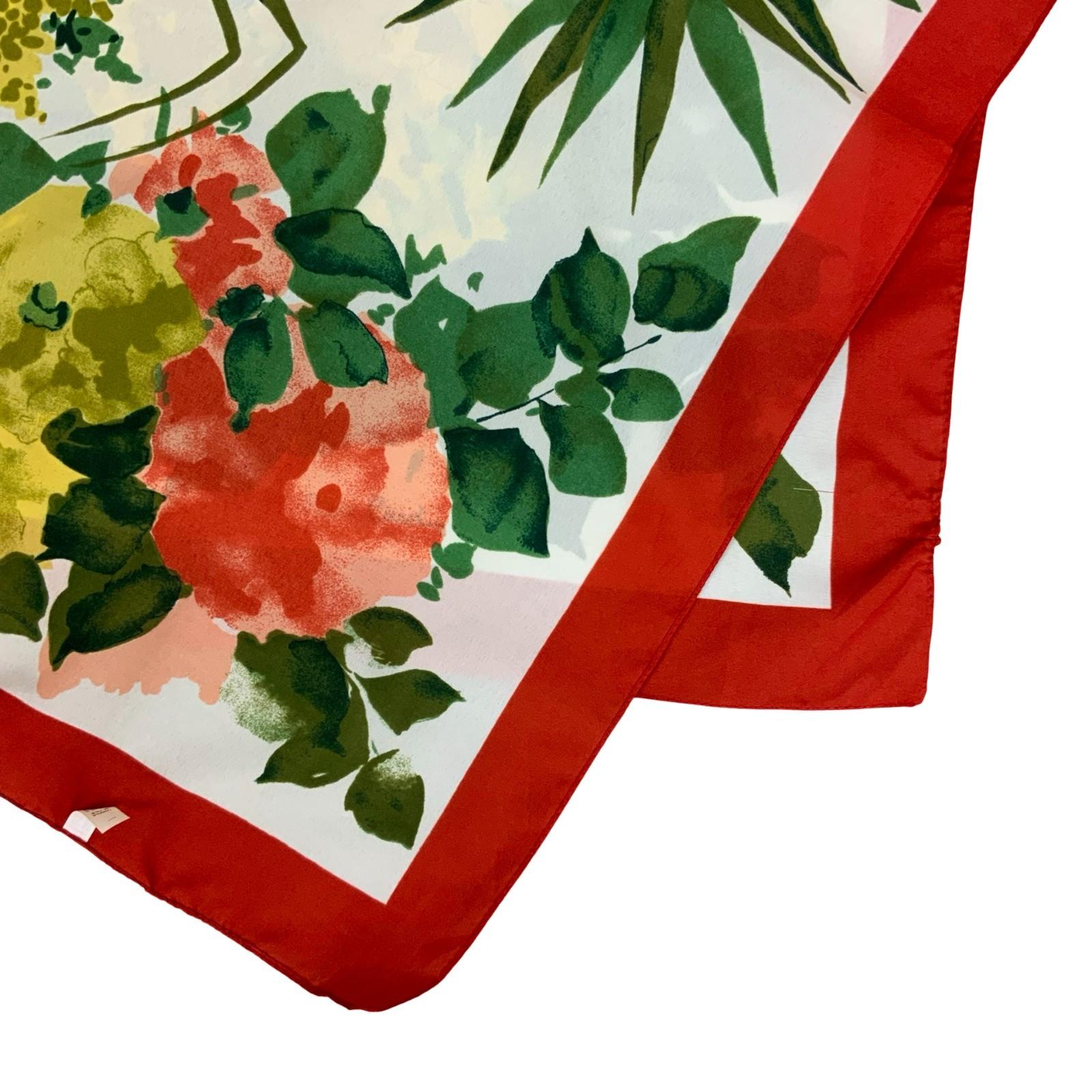 VTG 80s 'PIERRE CARDIN' FRENCH FLORAL RED GREEN YELLOW INTRICATE SQUARE SCARF