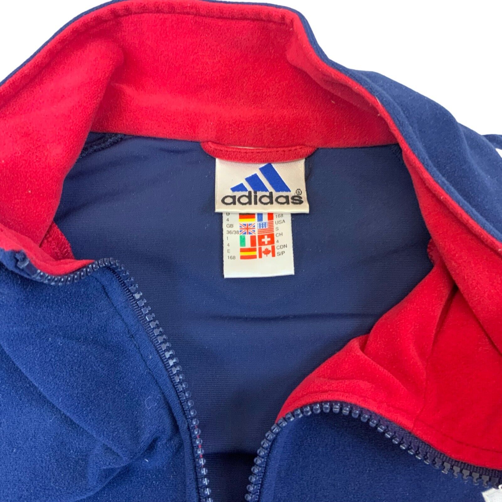 VTG 90s ADIDAS ORIGINALS NAVY BLUE RED ZIP UP FLEECE TRACK JACKET SIZE M