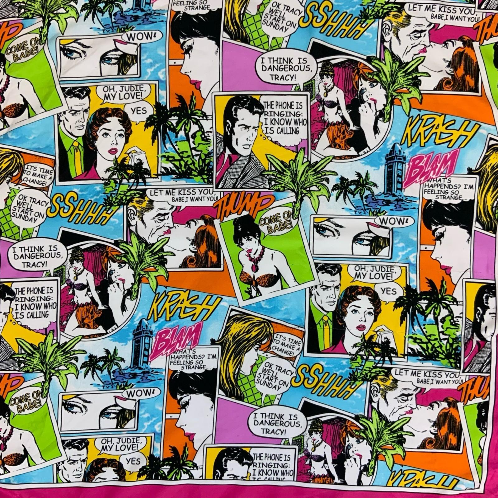 VTG 90s 'ATOS LOMBARDINI' PINK COMIC RETRO POP-ART GRAPHIC SQUARE SCARF