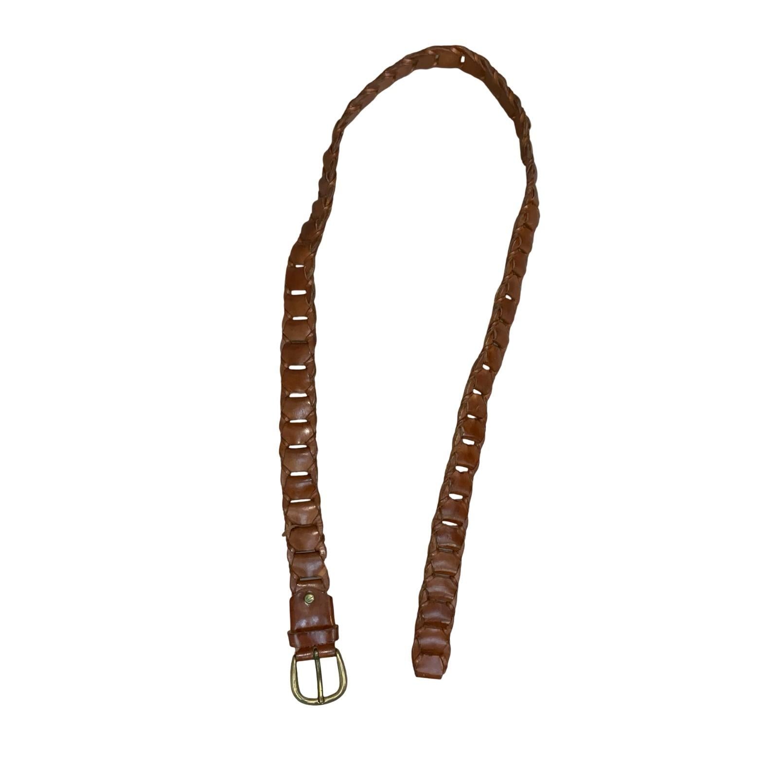 Vtg 90s Brown Genuine Leather Link Belt Brass Adjustable Italian Belt (one-size)