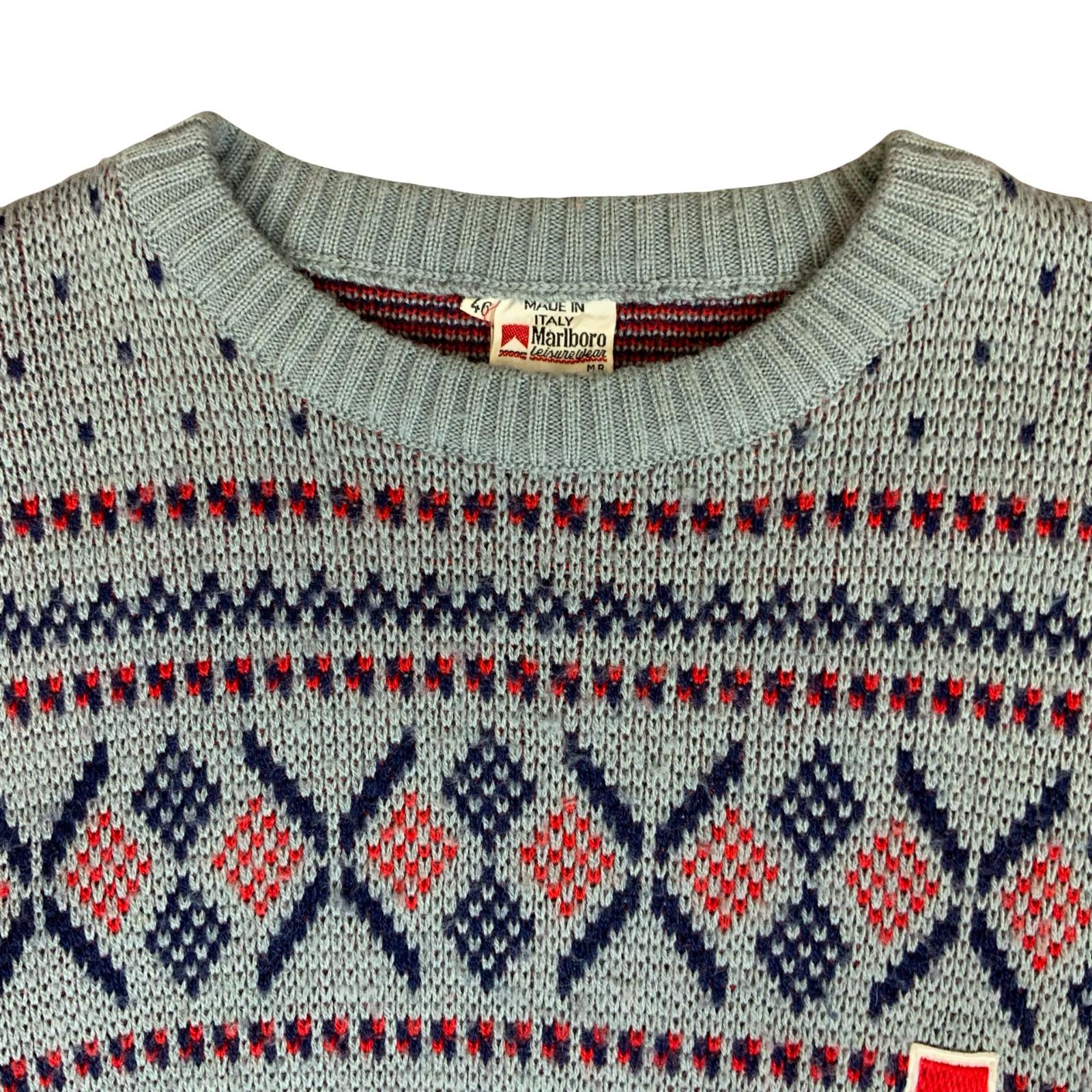 Vtg 90s Classic Marlboro Grey Blue Nordic Fair Isle Knitted Sweat Jumper S/M