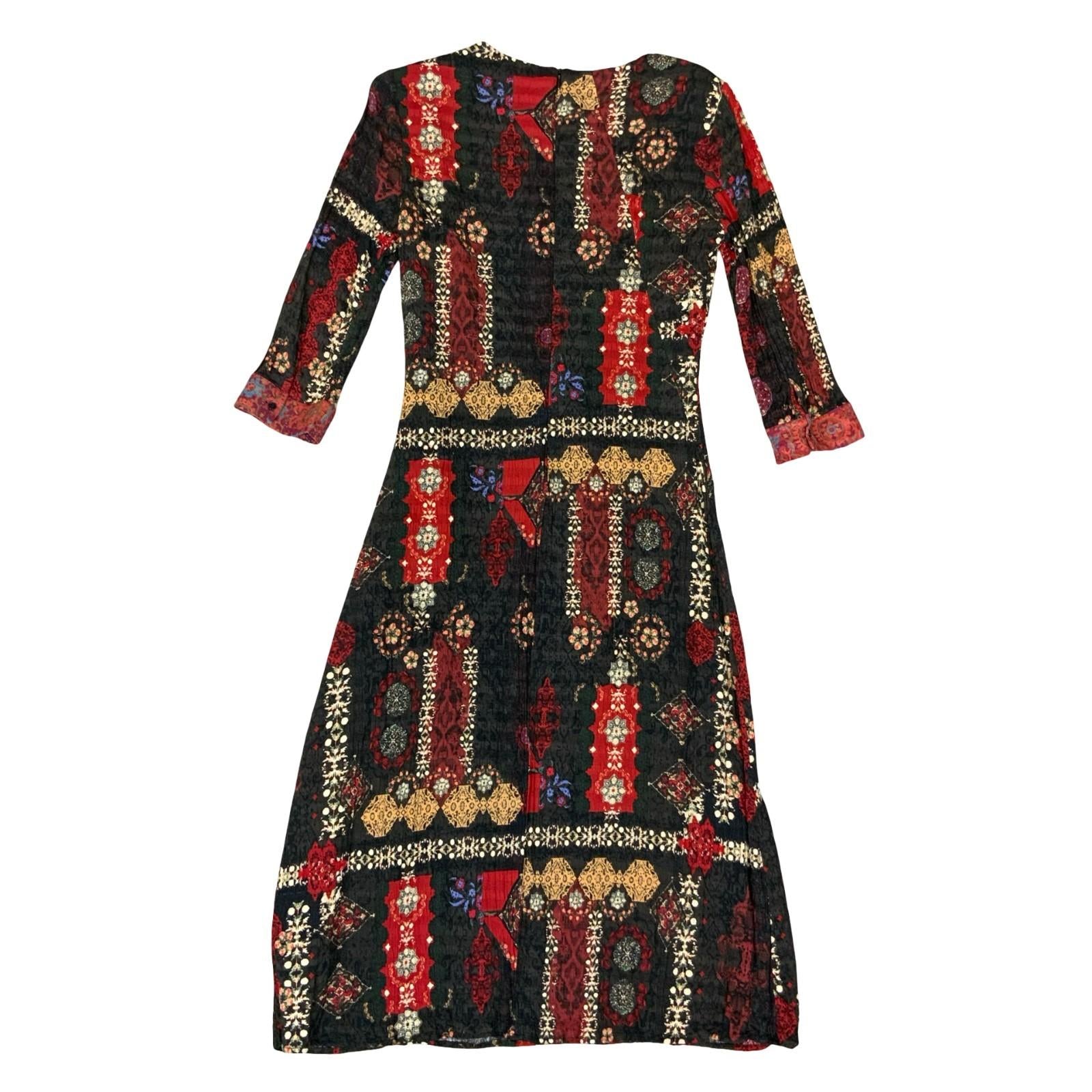 Vtg 90s 'Desigual' Black Red Geometric Boho Floral Patchwork Dress S UK 8/10