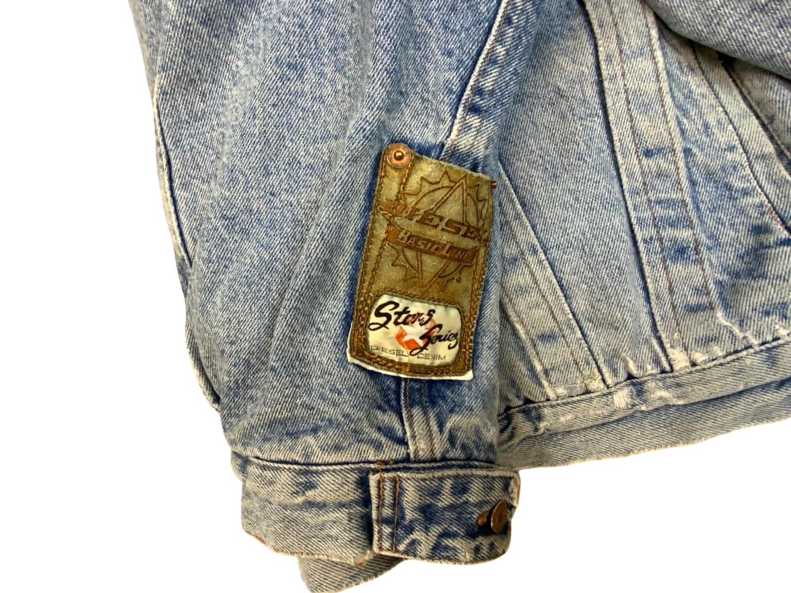 VTG 90s DISTRESSED DIESEL SHERPA LINED TYPE 3 TRUCKER DENIM JACKET DARK BLUE L
