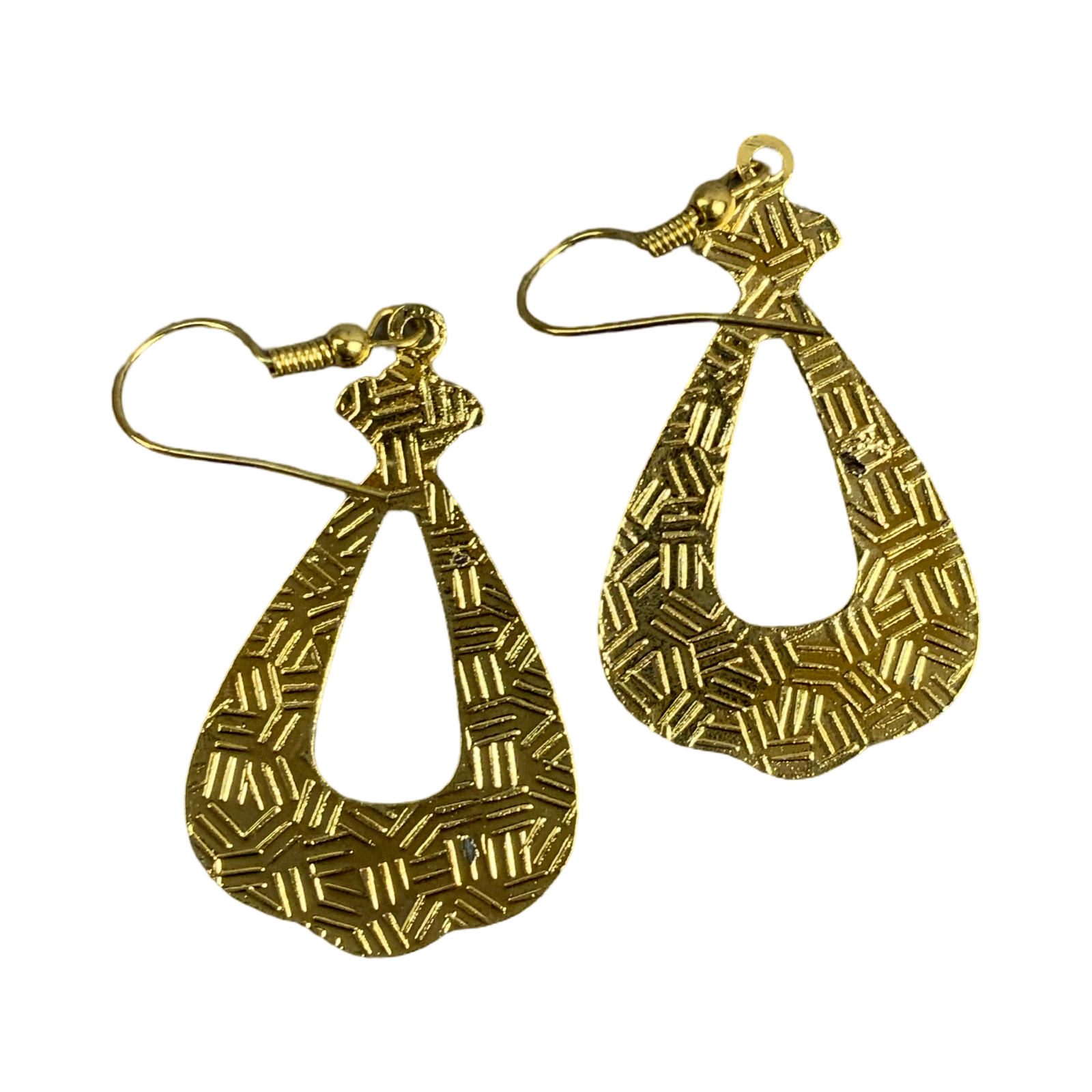 VTG 90S DOES 70S RED GOLD PINK GREEN ART DECO FLORAL ENAMEL HOOK EARRINGS ENV15