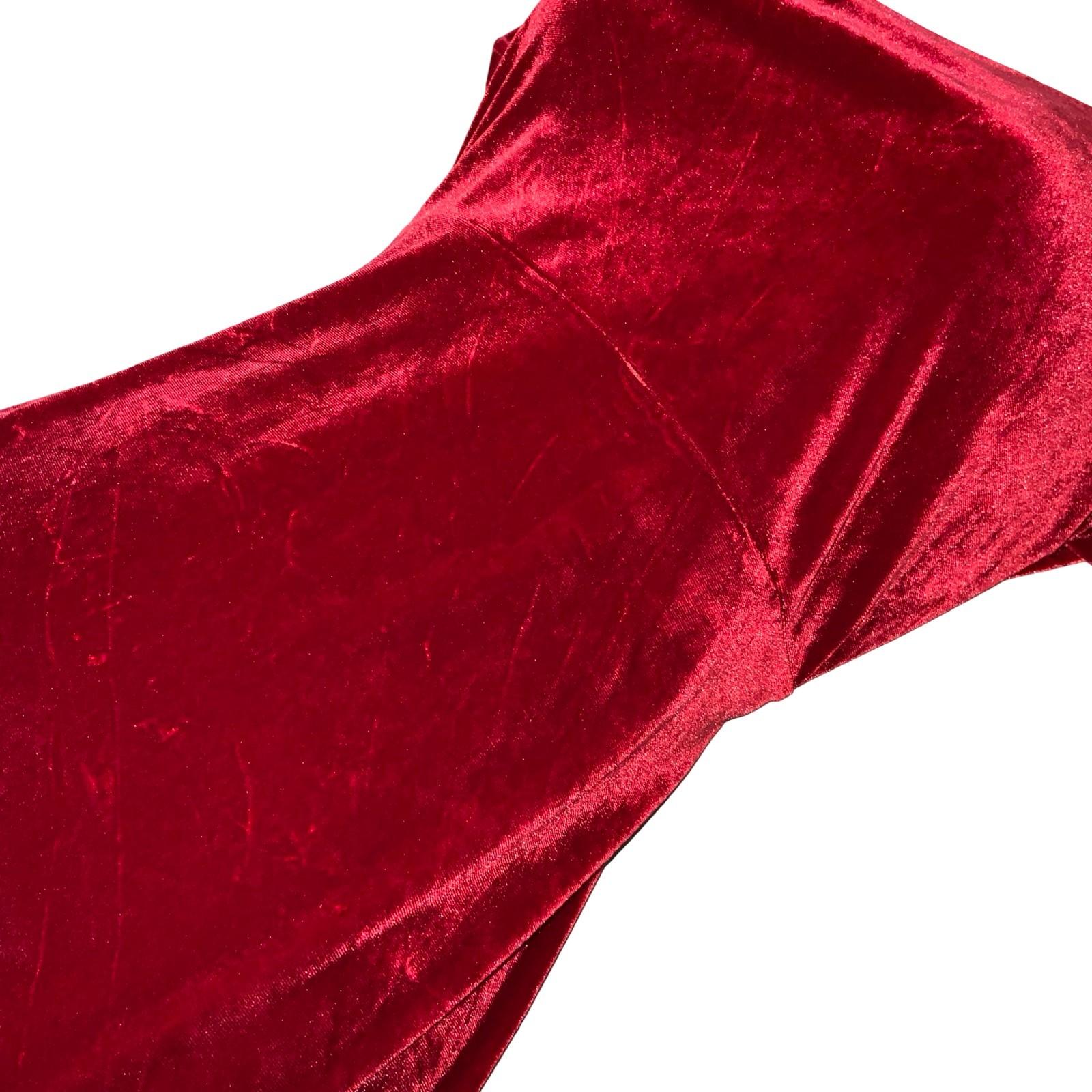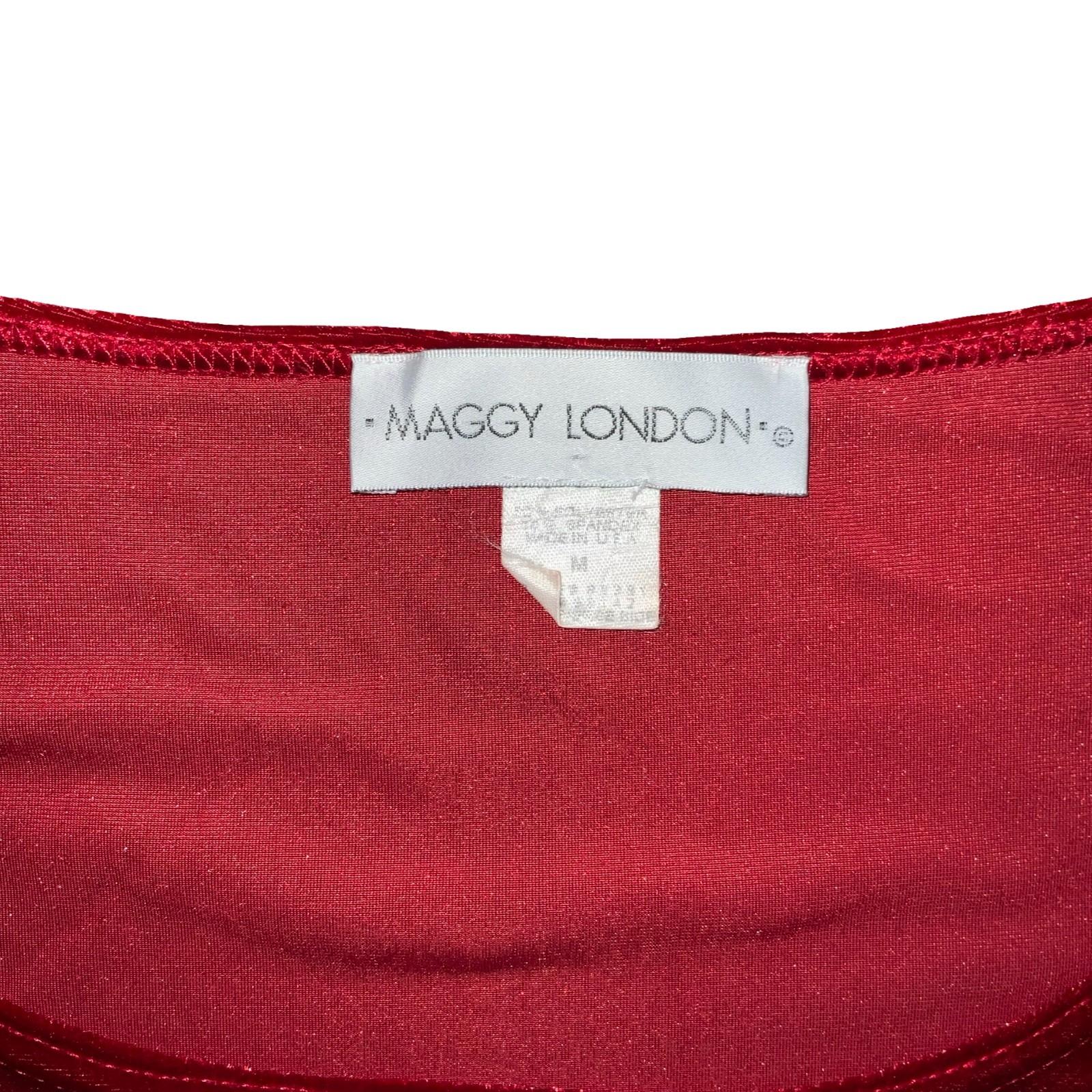 Vtg 90s 'Maggy London' Red Velvet Scoop Neckline Short Sleeve Midi Dress UK 10